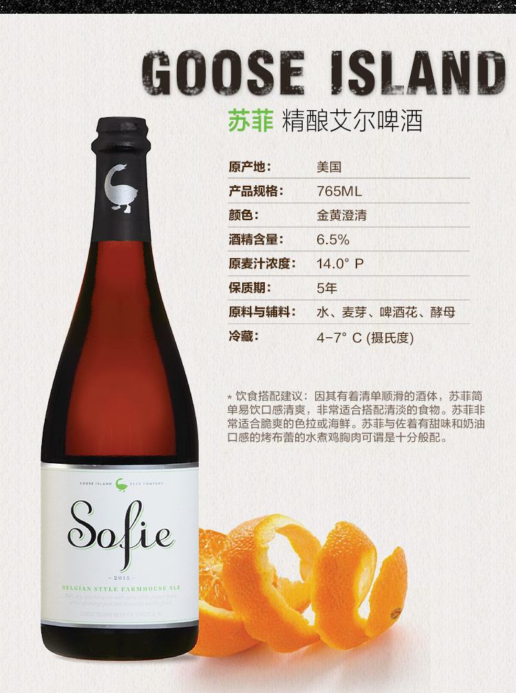 国产/进口:进口;产地:美国;适用场景:家庭聚会,礼节拜访,情侣约会,自斟自饮,派对必备,烧烤撸串,酒吧夜店;包装:瓶装;容量:500mL以上;类别:精酿;原料:水、啤酒花、麦芽、酵母;国产/进口:进口;保质期:5年;酒精度:6.5%;原产地:美国;原麦汁浓度:14.0°P;存储方法:常温阴凉处;类别:精酿;包装:瓶装;产品重量:1.9kg;容量:765ml;包装清单:鹅岛(Goose Island)艾尔精酿啤酒765ml*1瓶装;