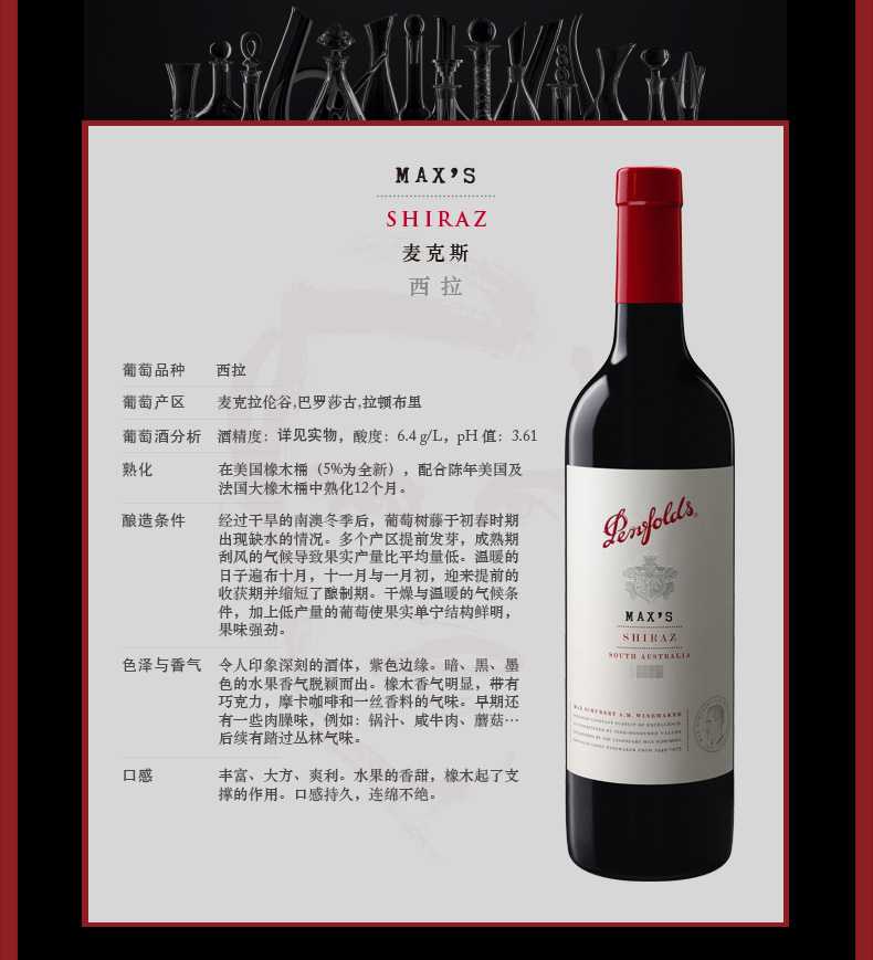 口感:饱满;特性:精品葡萄酒;国产/进口:进口;适用场景:礼节拜访,商务宴请,婚礼婚宴,情侣约会,家庭聚会,收藏,自斟自饮,闺蜜私语,派对活动;包装:整箱装;类别:红葡萄酒;葡萄品种:西拉/设拉子(Syrah/Shiraz);产地:澳大利亚;容量:750mL;甜度:干型;保质期:详见瓶身;酒精度:详见瓶身;原产地:澳大利亚;存储方法:常温 避光 卧放;容量:750ml;产品重量:0.75kg;包装清单:红酒一箱750ml*6瓶;