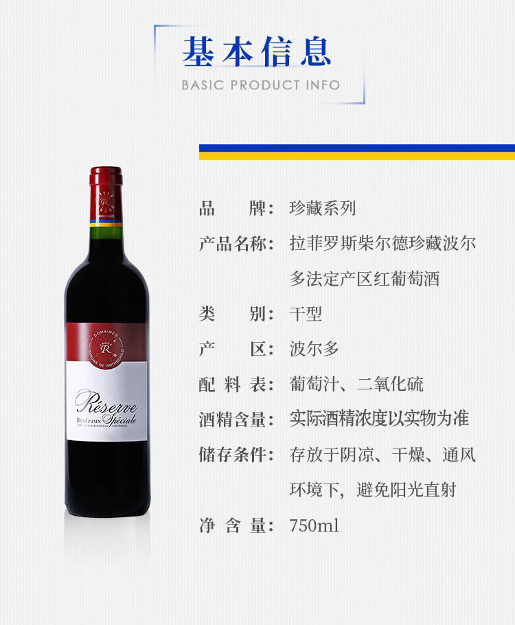 拉菲(LAFITE)珍藏波尔多 梅洛干红葡萄酒 750ml*6瓶 整箱装 法国进口红酒