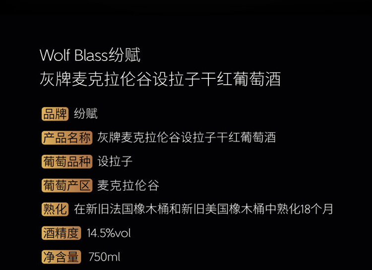 颜色:宝石红;口感:饱满;特性:精品葡萄酒;国产/进口:海外直采;适用场景:礼节拜访,商务宴请,婚礼婚宴,情侣约会,家庭聚会,收藏,自斟自饮;包装:整箱装;酸度:高酸;类别:红葡萄酒;葡萄品种:西拉/设拉子(Syrah/Shiraz);类型:静止酒;产地:澳大利亚;容量:750mL;甜度:干型;保质期:无;酒精度:14.5%vol;原产地:澳大利亚;存储方法:平躺存放;容量:750ml;产品重量:1.54kg;包装清单:750ml*6瓶;