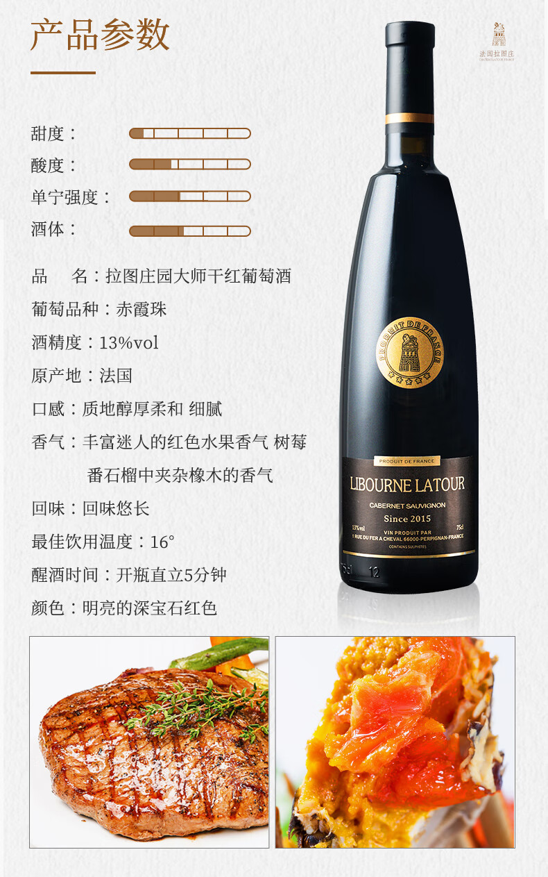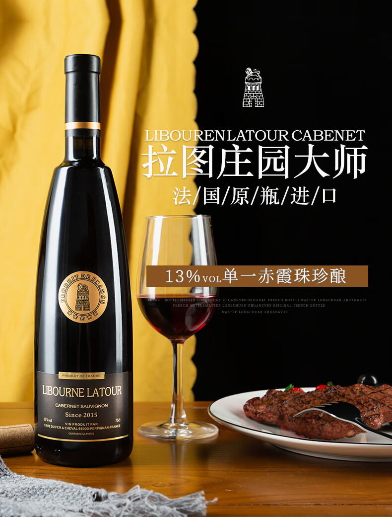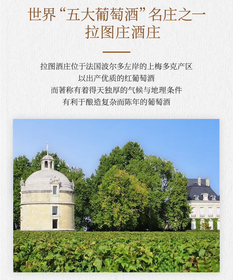 法国原瓶进口红酒 拉图庄园大师波尔多 优选赤霞珠干红葡萄酒 750ml*6支整箱装