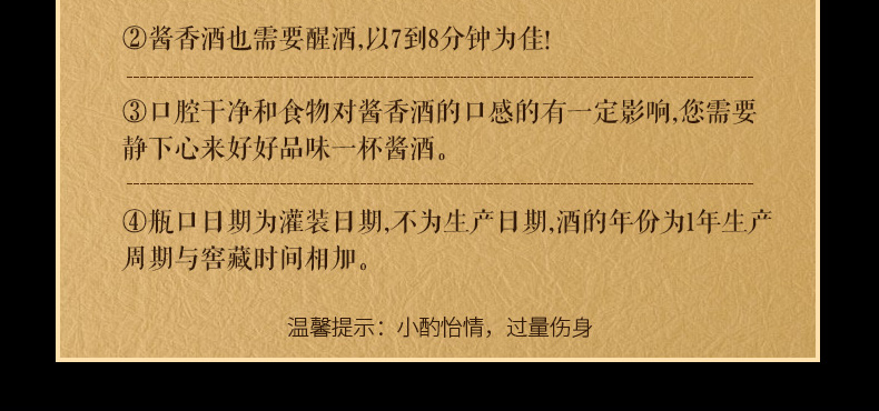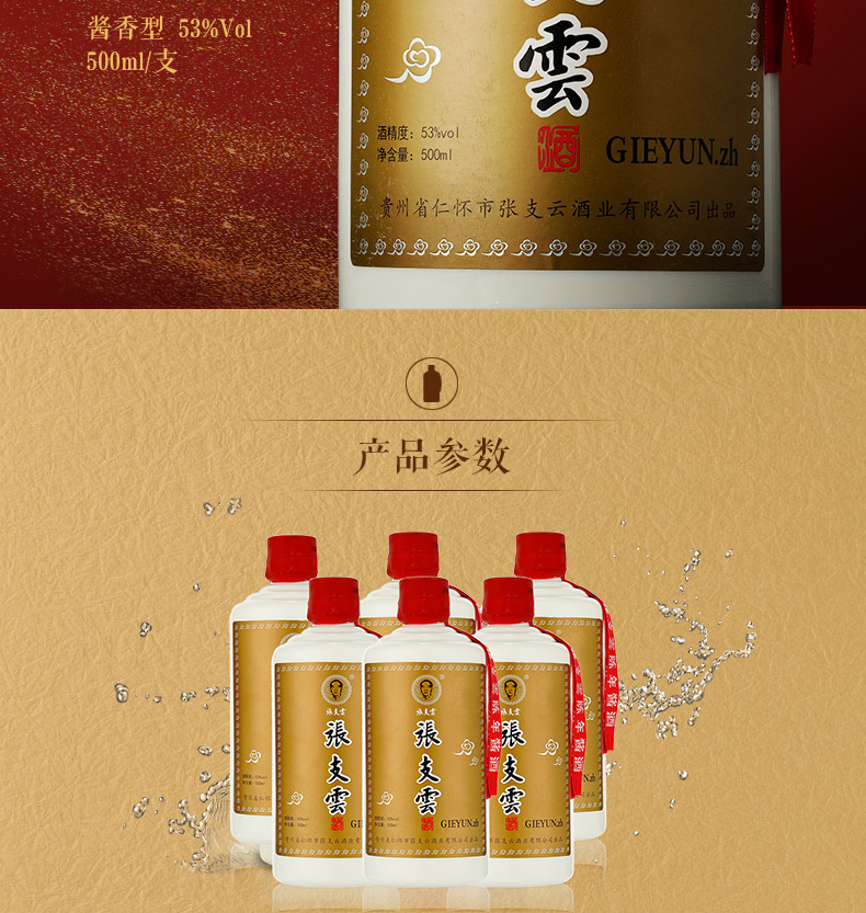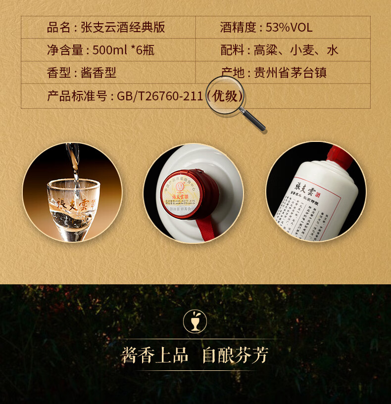 包装:整箱装;容量:750mL及以上;香型:酱香型;度数:50度及以上;产地:贵州;酒精度:53%vol;产品重量:7200g;容量:500ML*6;包装清单:500ml*6瓶 礼品袋*3;
