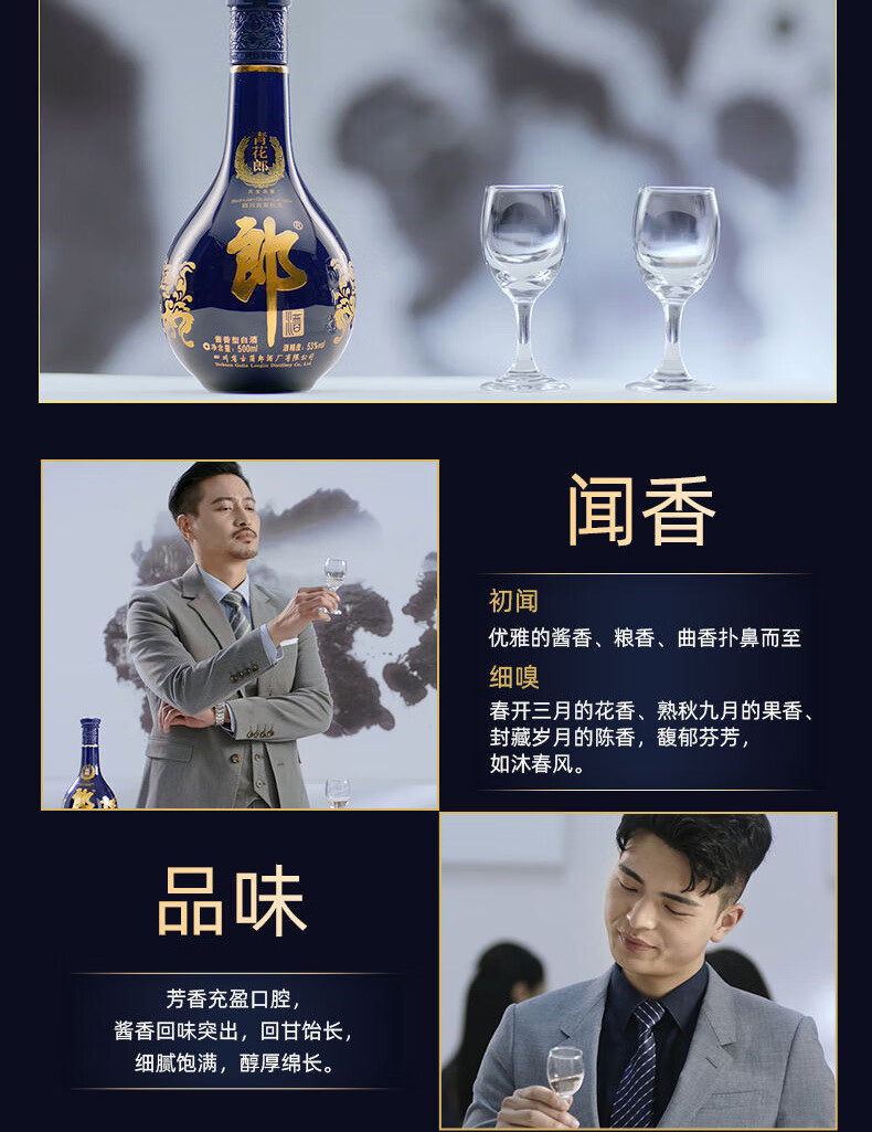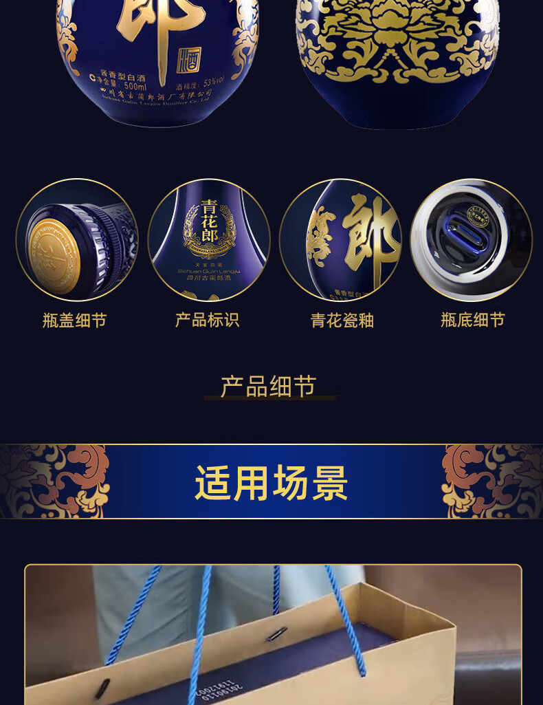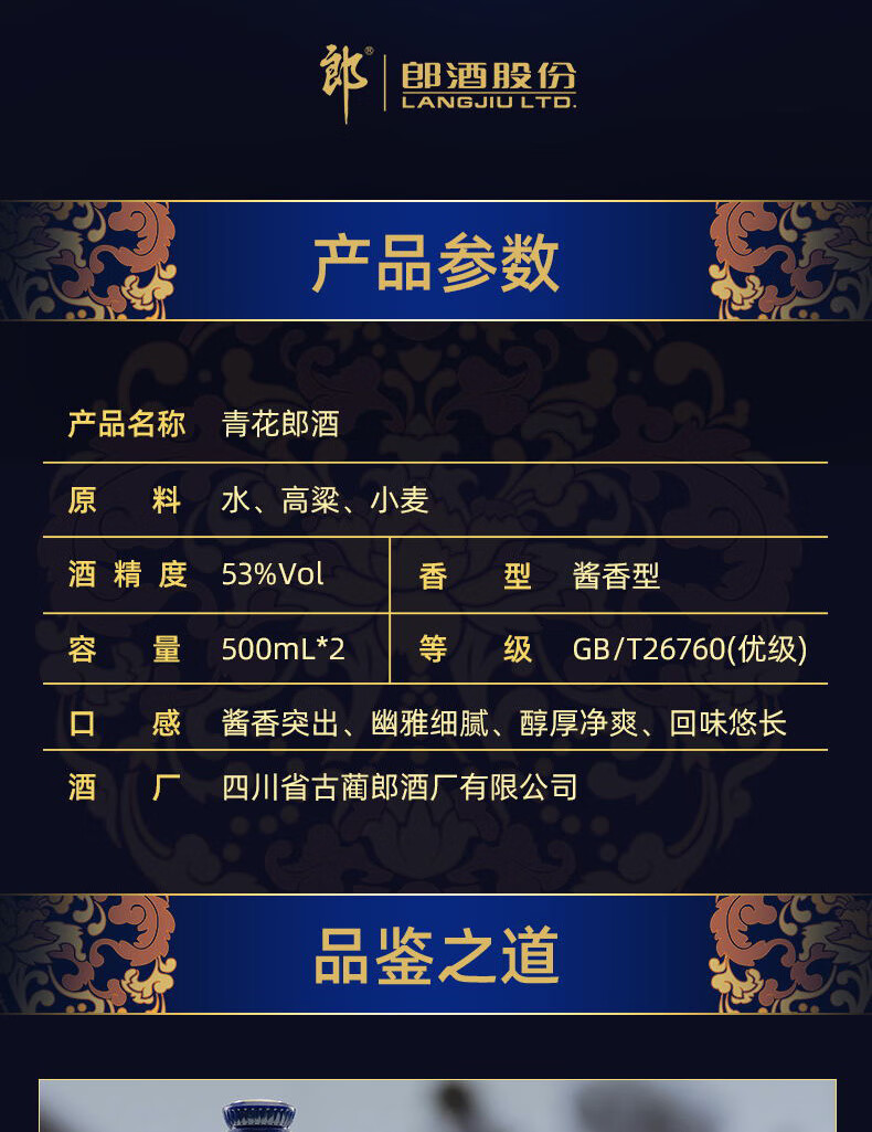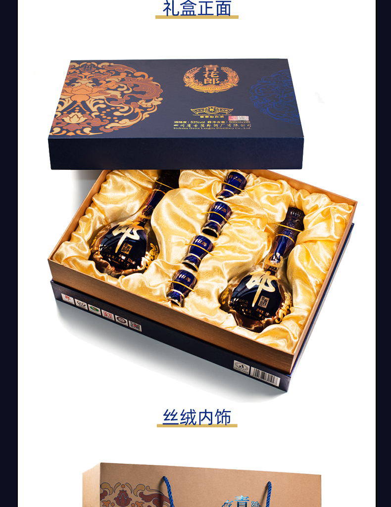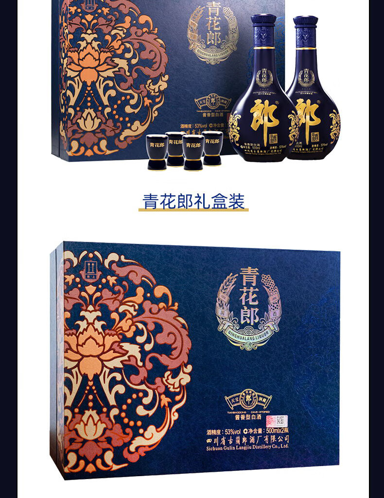 包装:整箱装;容量:500-749mL;香型:酱香型;产地:四川;度数:50度及以上;酒精度:53%vol;容量:500ml*2*4;产品重量:14.3g;包装清单:500ml*2瓶*4盒;