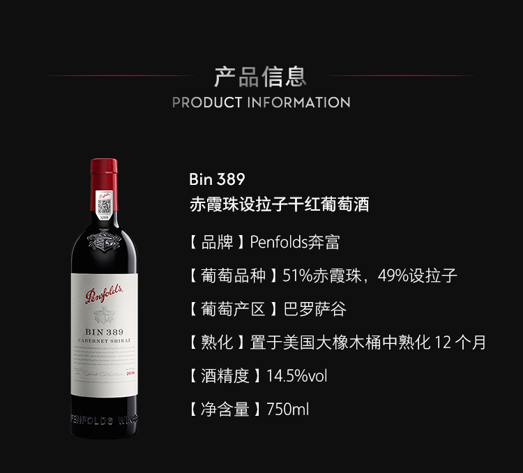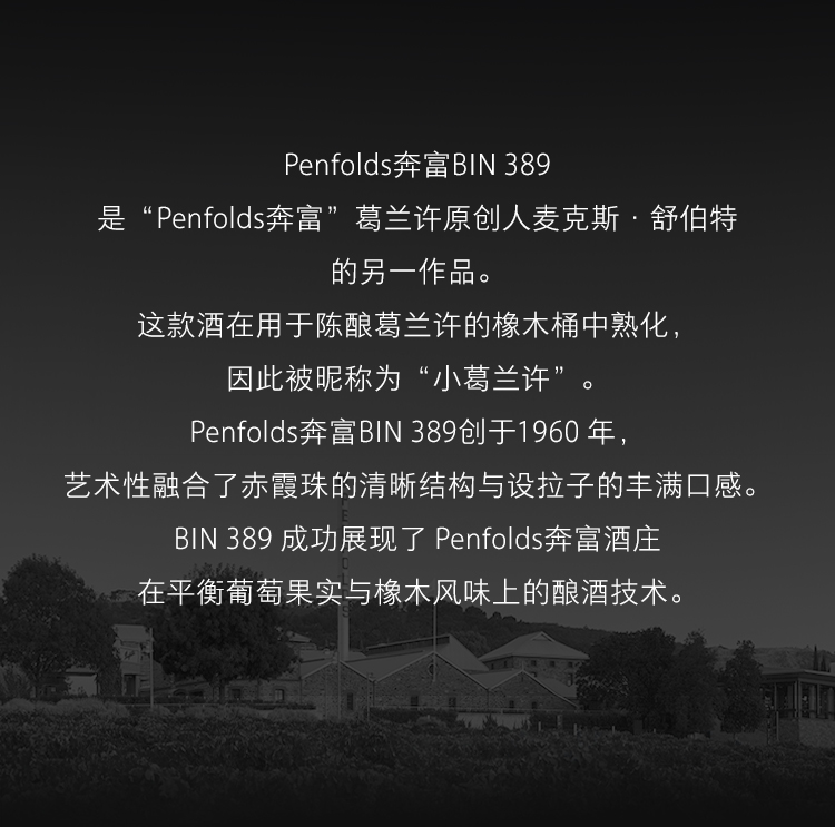 奔富(Penfolds) Bin389赤霞珠设拉子红葡萄酒 750ml*6瓶 整箱装 澳大利亚原瓶进口红酒