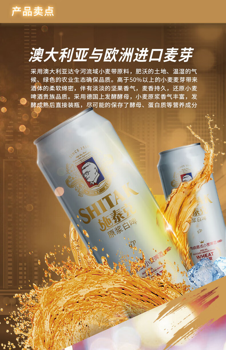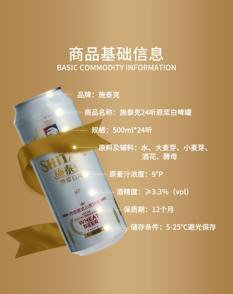 国产/进口:国产;产地:中国大陆;适用场景:野餐出游,礼节拜访,家庭聚会,自斟自饮,情侣约会,烧烤撸串,派对必备,酒吧夜店;包装:听装;容量:500mL;类别:原浆啤酒;原料:水、大麦芽、小麦芽、酵母、酒花;系列:天湖施泰克系列;保质期:365天;酒精度:≥3.3%(vol);原产地:中国大陆;原麦汁浓度:9°P;存储方法:5度-25度 严防日晒雨淋;产品重量:6.5kg;容量:500ml;包装清单:天湖啤酒 施泰克小麦原浆白啤酒 麦香永久 饮领“德式”潮流 500ml*12听 整箱装;