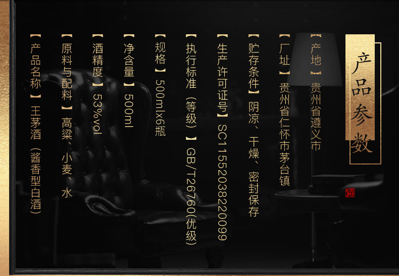 包装:整箱装;容量:500-749mL;香型:酱香型;产地:贵州;度数:50度及以上;酒精度:53%vol;容量:500;产品重量:9110g;包装清单:茅台 王茅 祥雅53度酱香型白酒 贵州茅台酒股份有限公司出品 500ml*6瓶整箱装 *1;