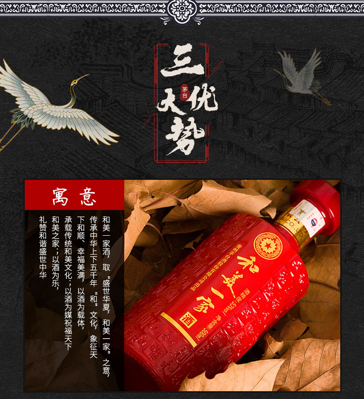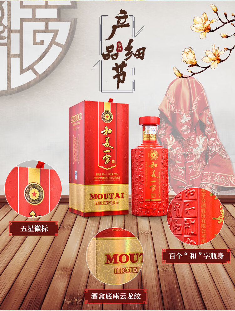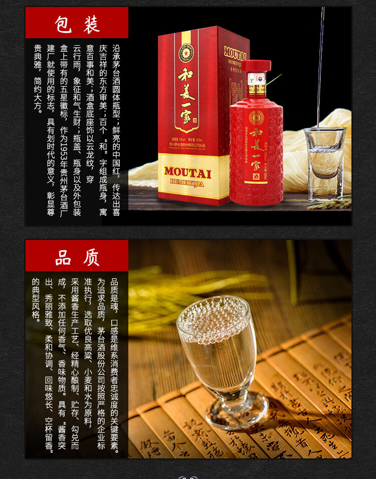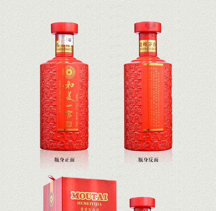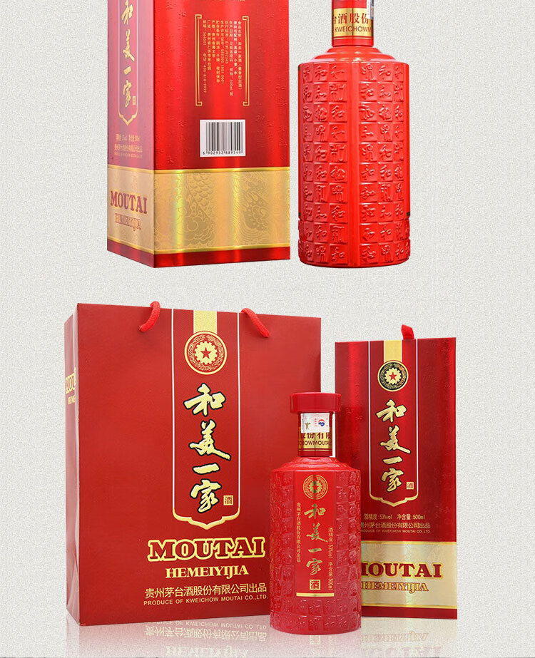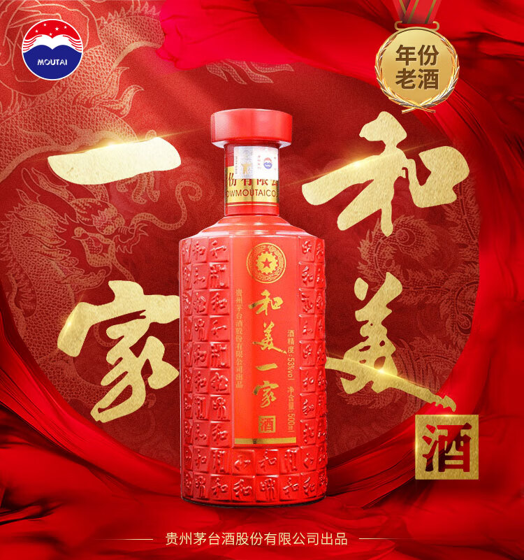 包装:整箱装;容量:376-499mL;香型:酱香型;度数:50度及以上;香型:酱香型;产地:贵州茅台;酒精度:53%vol;包装:整箱装;产品重量:9830g;容量:500ml;包装清单:茅台(MOUTAI)贵州茅台 老酒 和美一家酒 53度 酱香型白酒 500ml*6瓶整箱装*1;