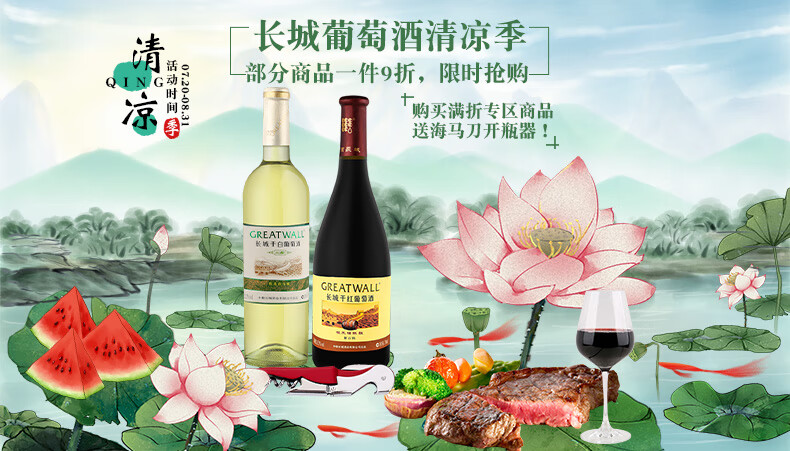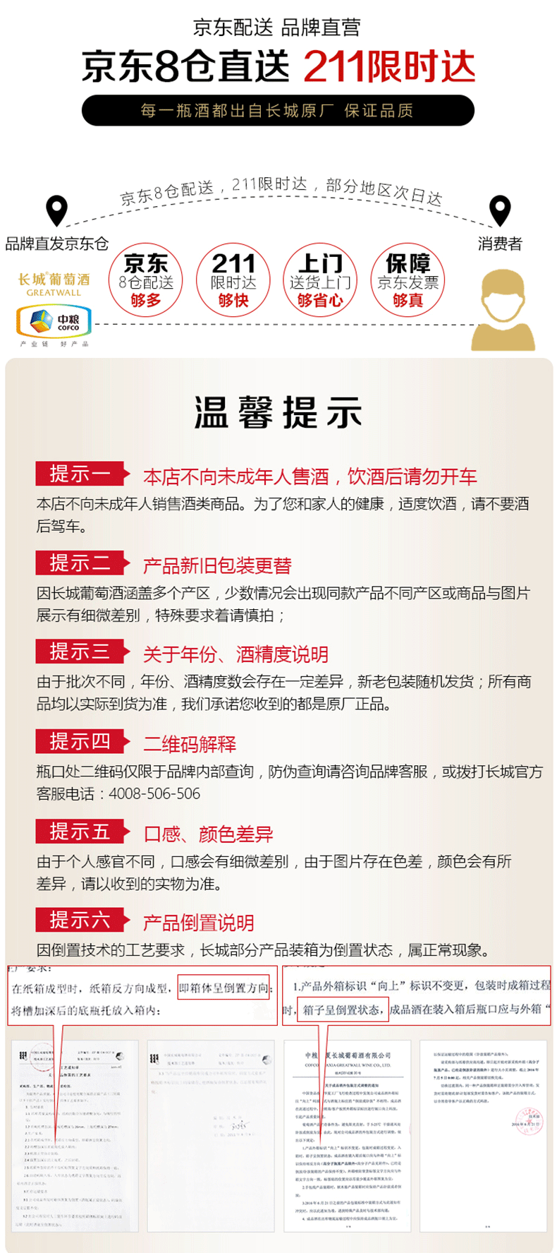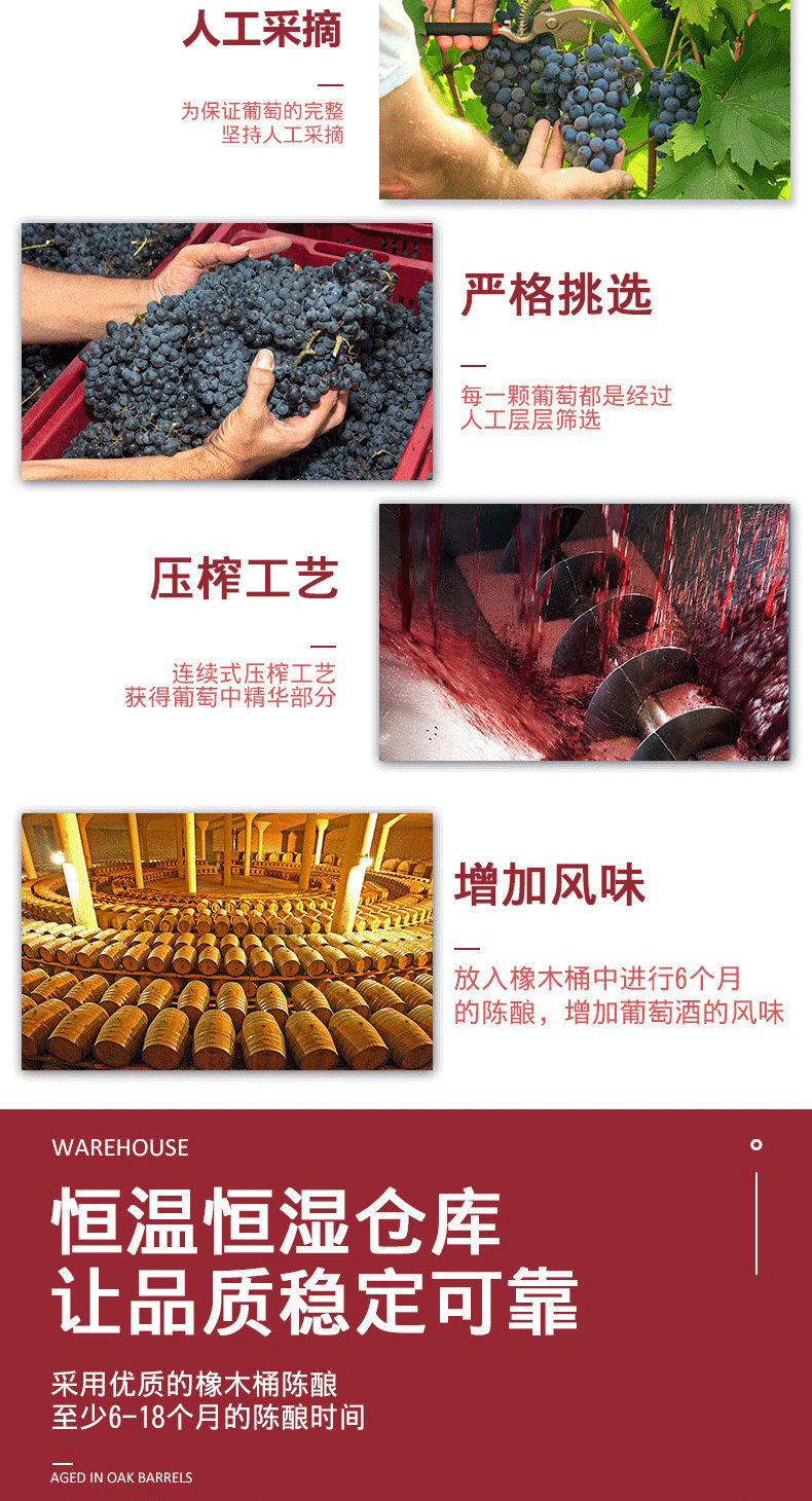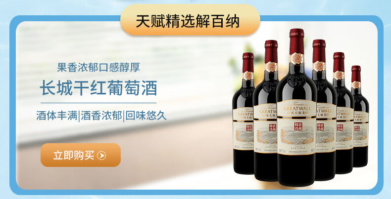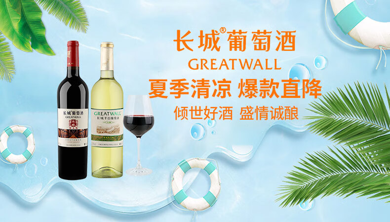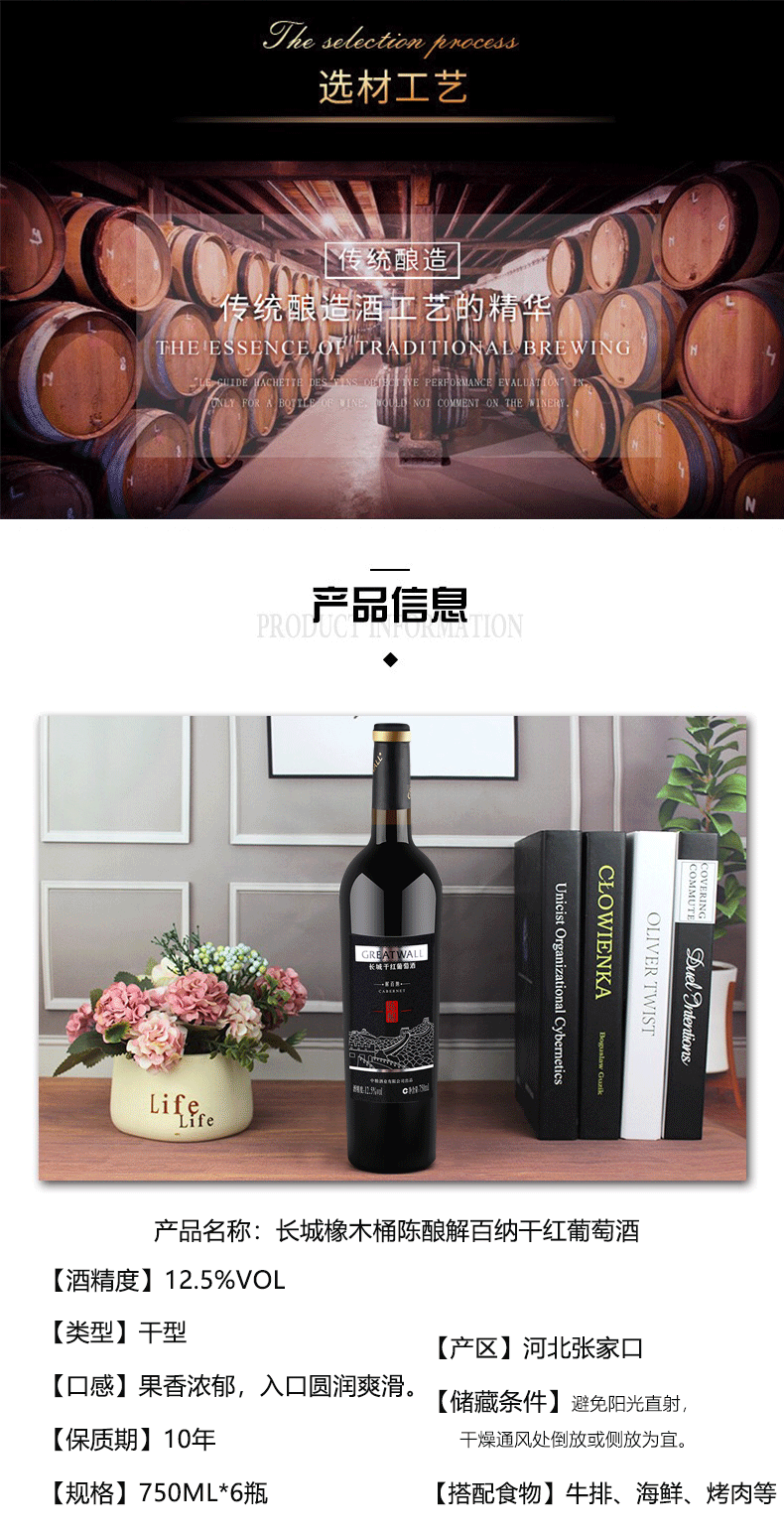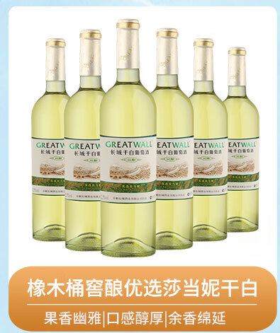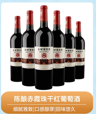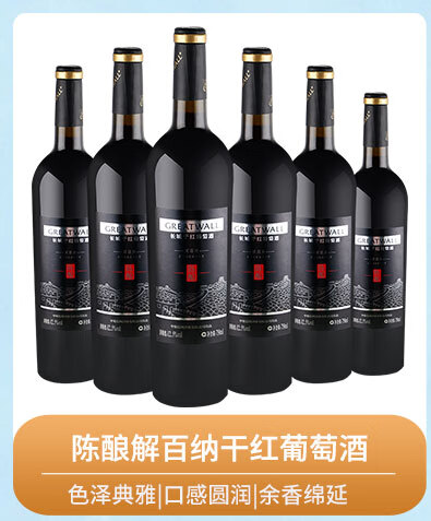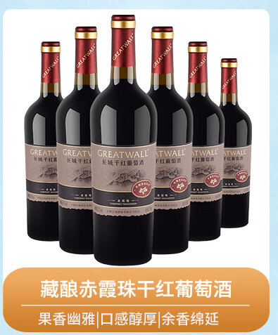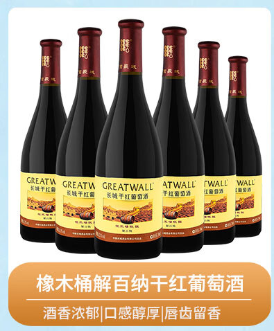 长城(GreatWall)红酒 橡木桶陈酿解百纳干红葡萄酒750ML*6瓶整箱装