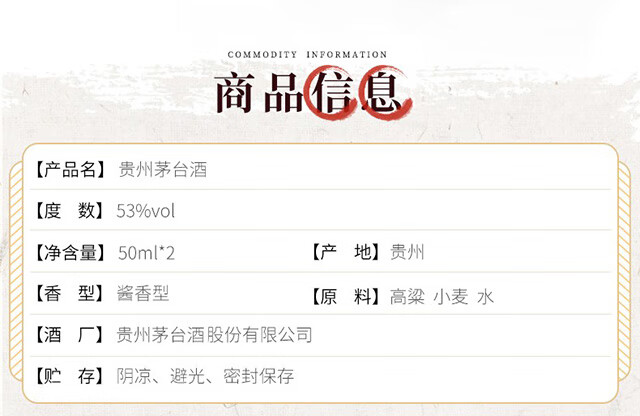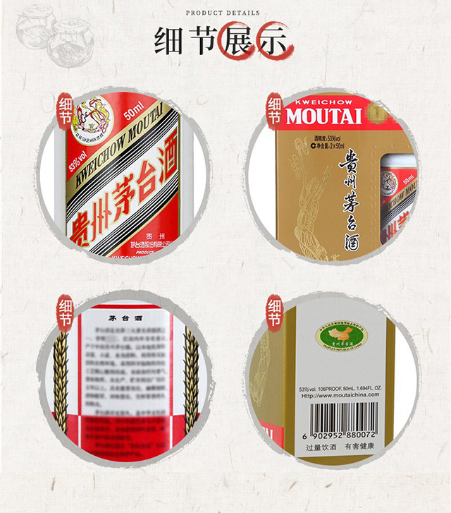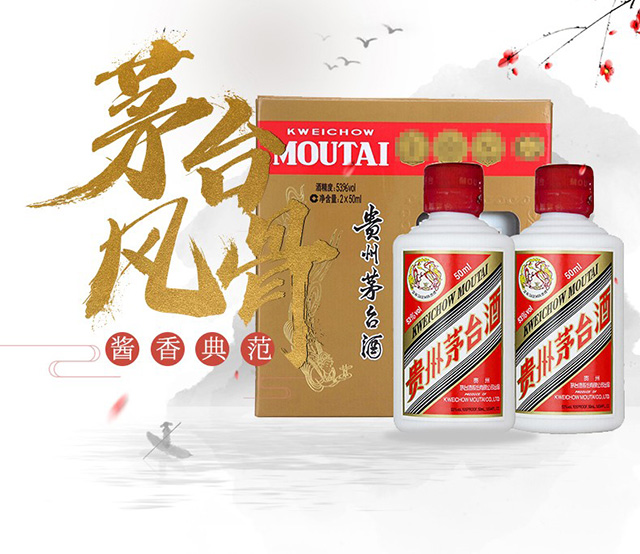 包装:礼盒装;容量:375mL及以下;香型:酱香型;产地:贵州;度数:50度及以上;酒精度:53%vol;容量:50ml;产品重量:200g;包装清单:茅台 飞天 小酒 酱香型白酒 53度 50ml*2双瓶装*1;