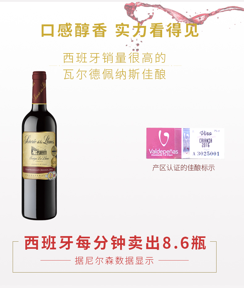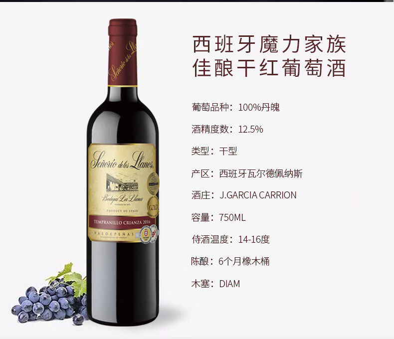 口感:清新;特性:其它;国产/进口:进口;产地:西班牙;适用场景:家庭聚会;包装:整箱装;酸度:中酸;容量:750mL;甜度:干型;类别:红葡萄酒;葡萄品种:其它;特性:普通餐酒;年份:2016;甜度:干型;口感:清新;葡萄品种:其它;国产/进口:进口;保质期:3650;产区:其它;酒精度:12.5;原产地:西班牙;存储方法:干燥避光;类别:红葡萄酒;包装:整箱装;产品重量:7.5kg;容量:750;包装清单:原装纸箱;