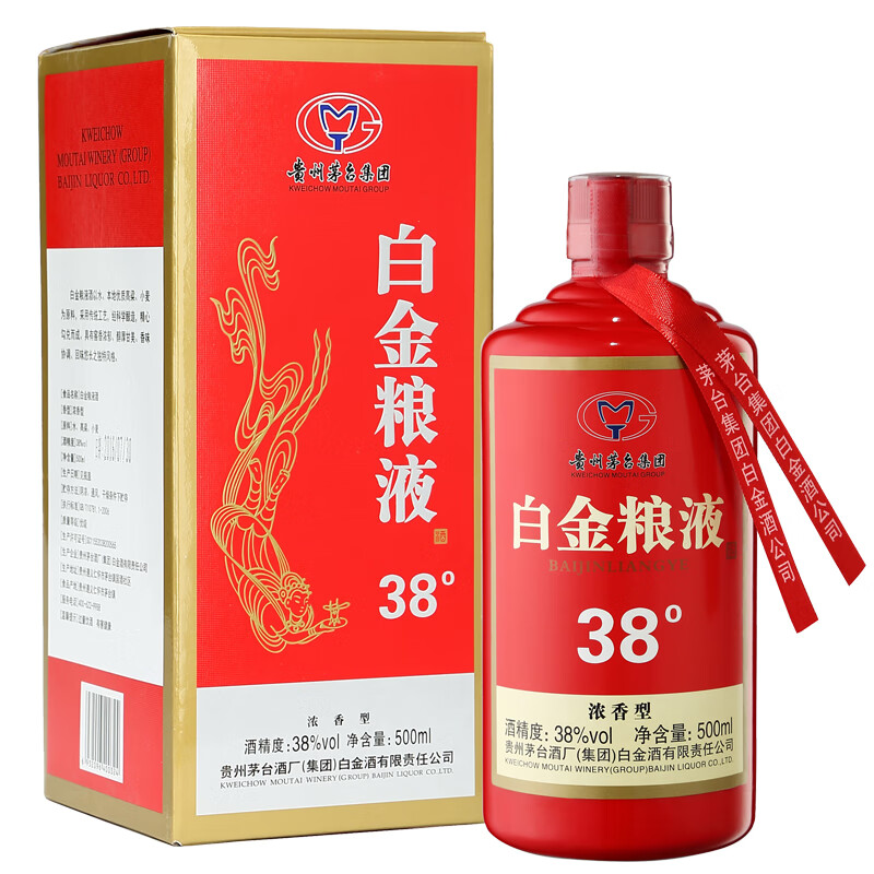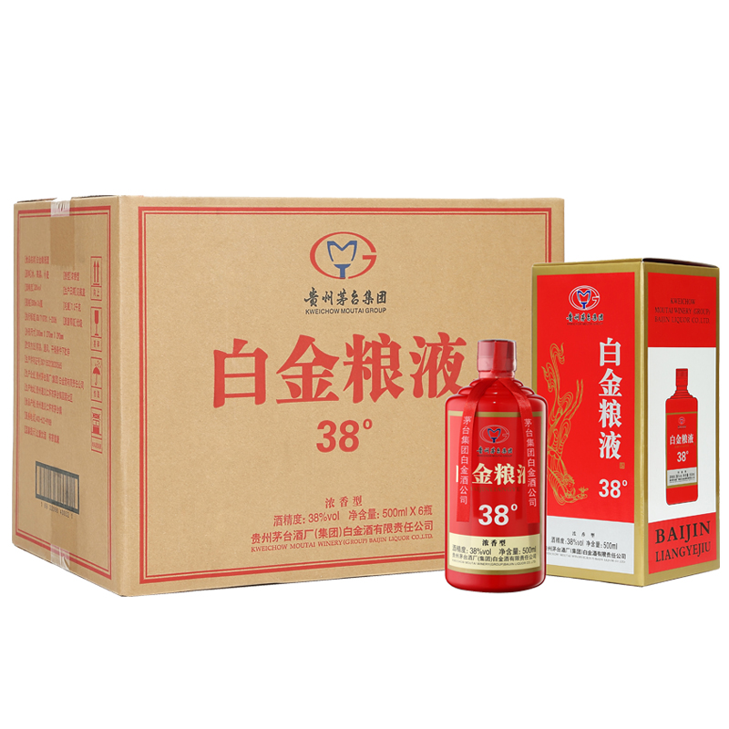 包装:整箱装;容量:500-749mL;香型:浓香型;度数:35-39度;香型:浓香型;产地:贵州;酒精度:38%vol;包装:整箱装;容量:500ml;产品重量:7200g;包装清单:38度浓香型白金粮液酒500mlX6;