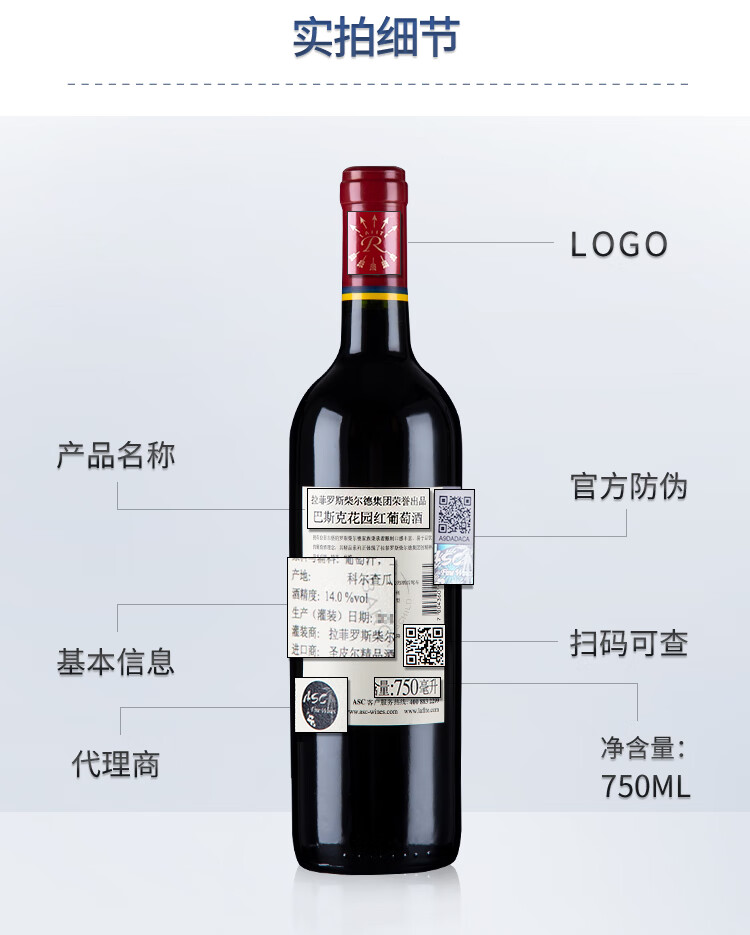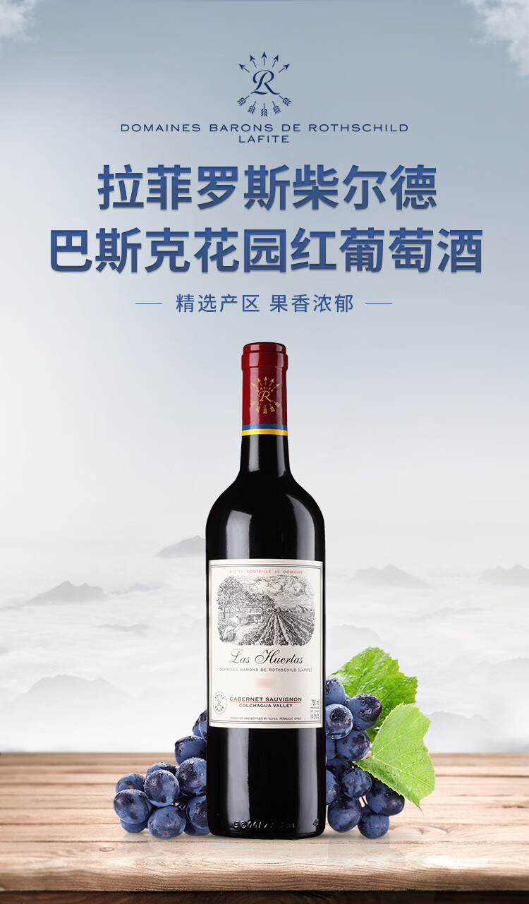 拉菲(LAFITE)巴斯克花园 赤霞珠干红葡萄酒 750ml单瓶装 智利进口红酒