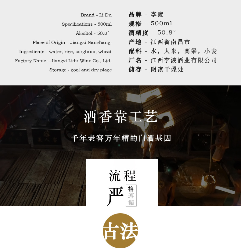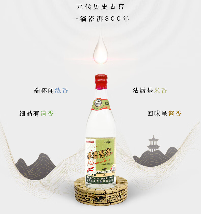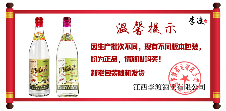 包装:整箱装;容量:500-749mL;香型:兼香型;产地:江西;度数:50度及以上;酒精度:50.8%vol;容量:500;产品重量:500g;包装清单:50.8度李渡高粱1975*6 整箱装;