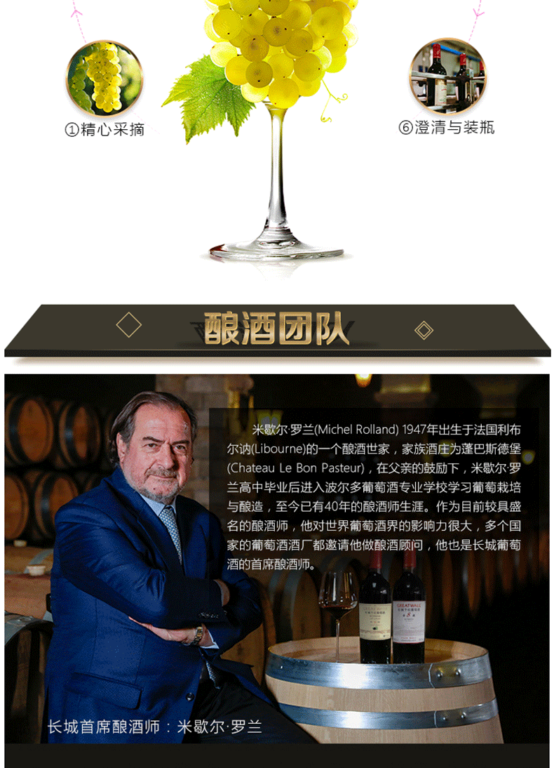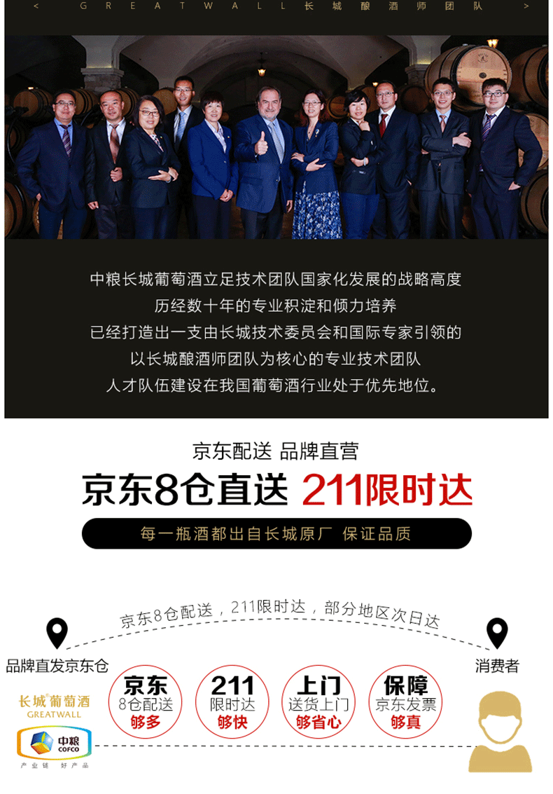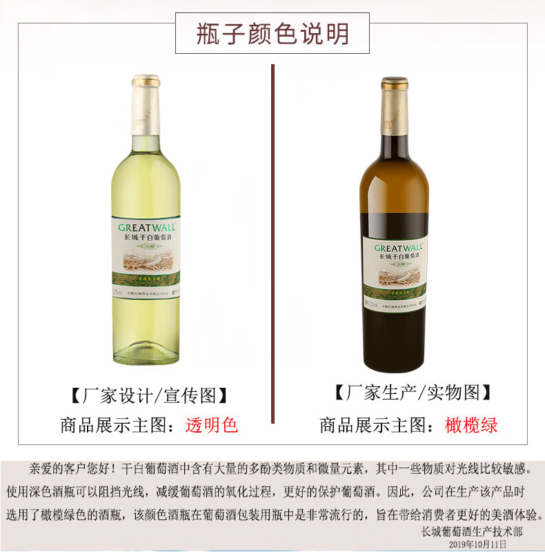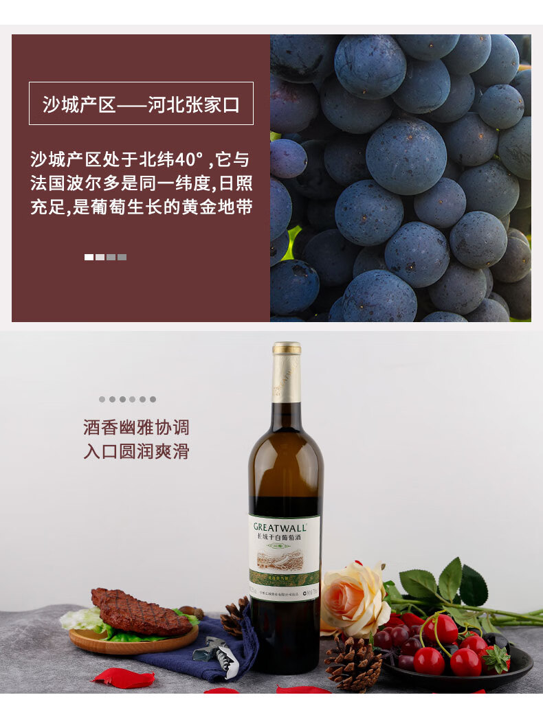 长城(GreatWall)红酒 橡木桶优选莎当妮干白葡萄酒750ML*6瓶整箱装