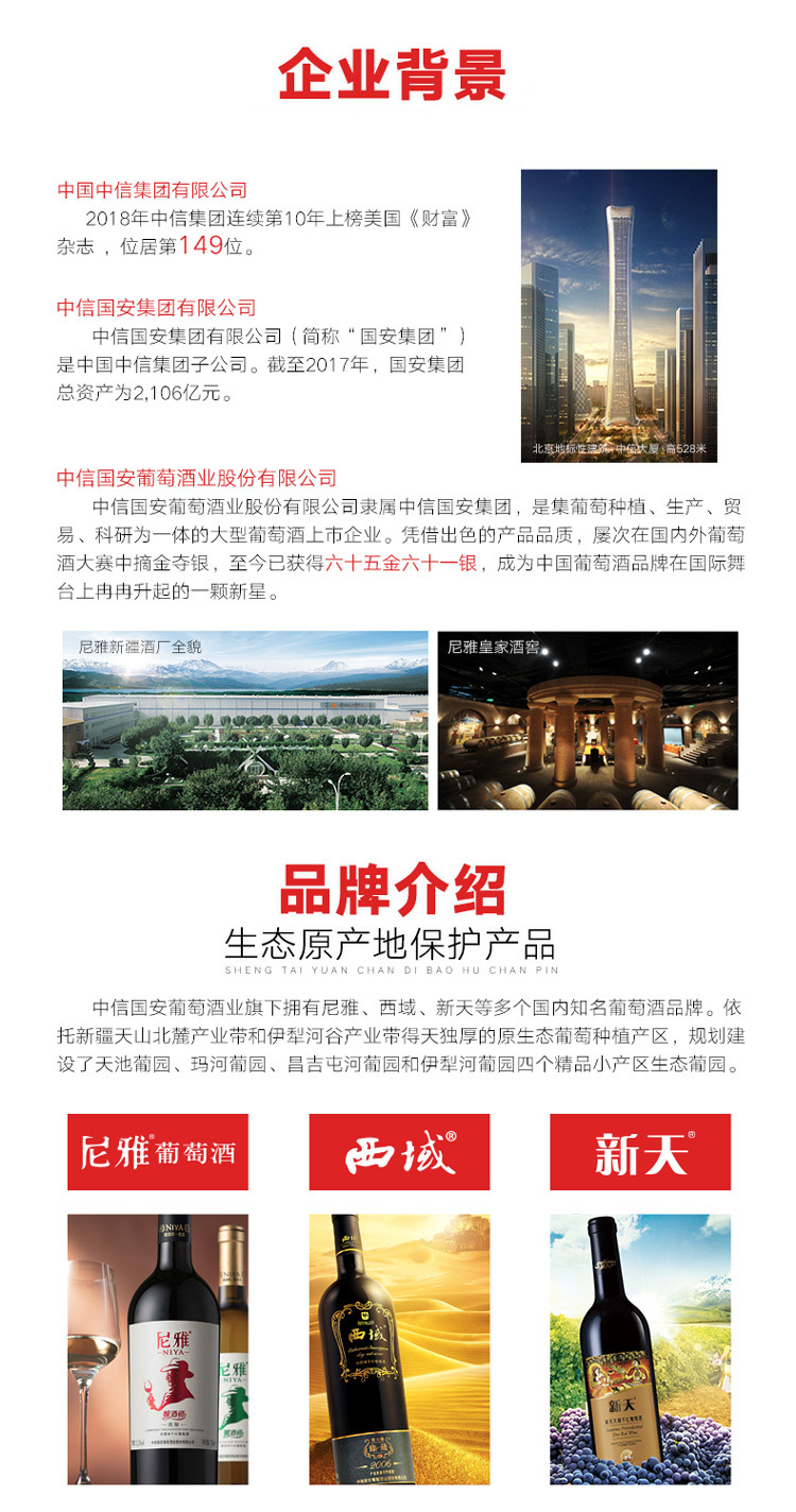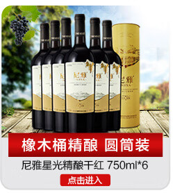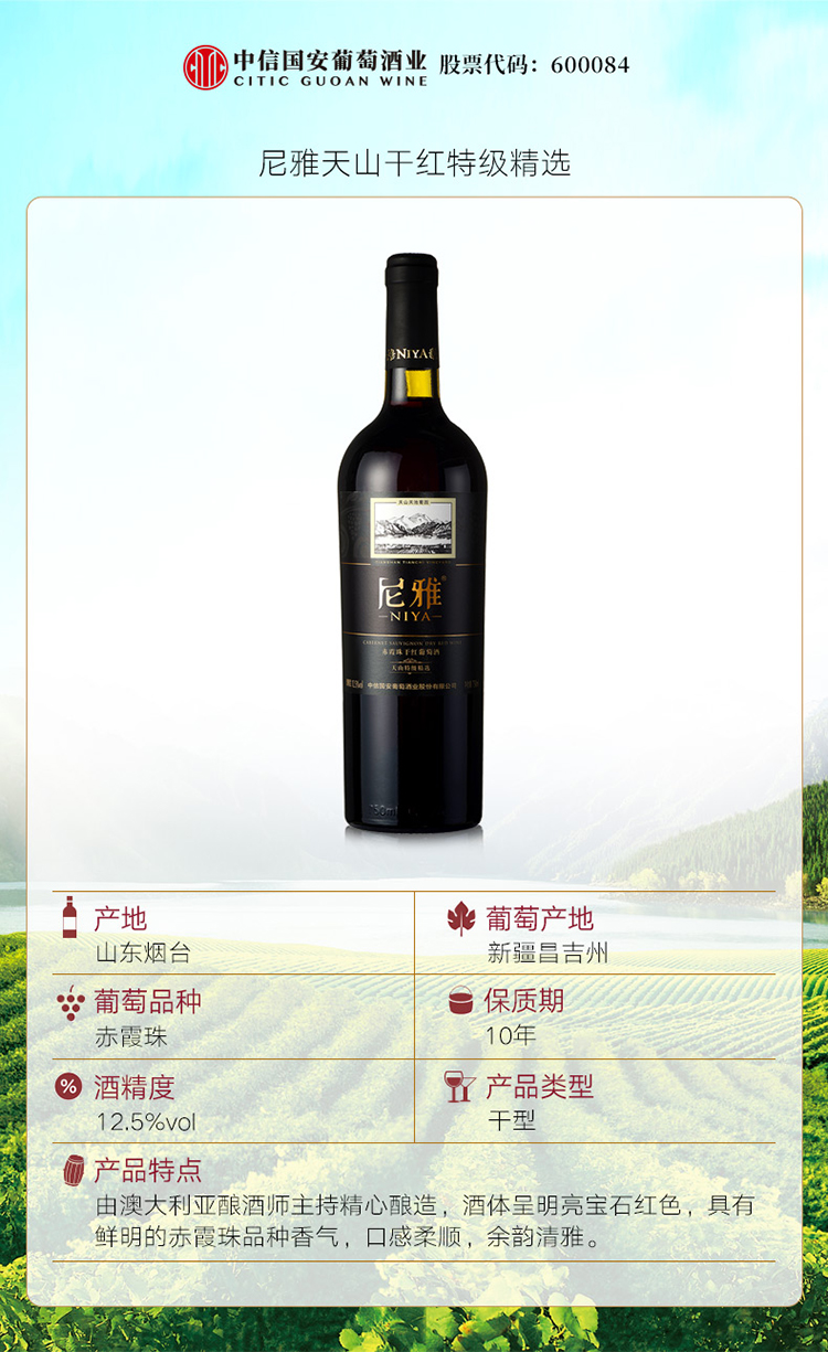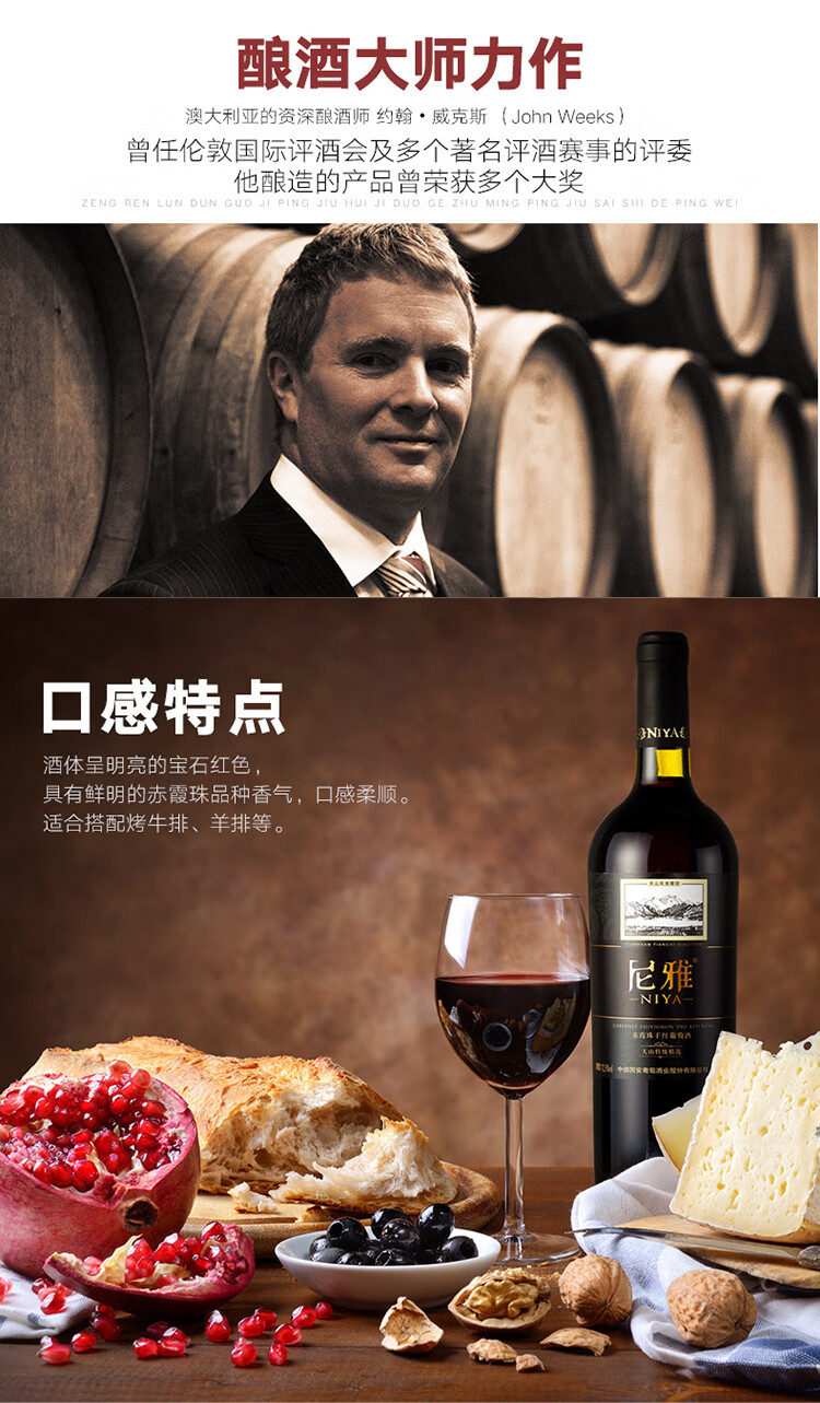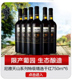 尼雅 新疆红酒 天山系列 特级精选 赤霞珠干红葡萄酒 750ml*6瓶 整箱装