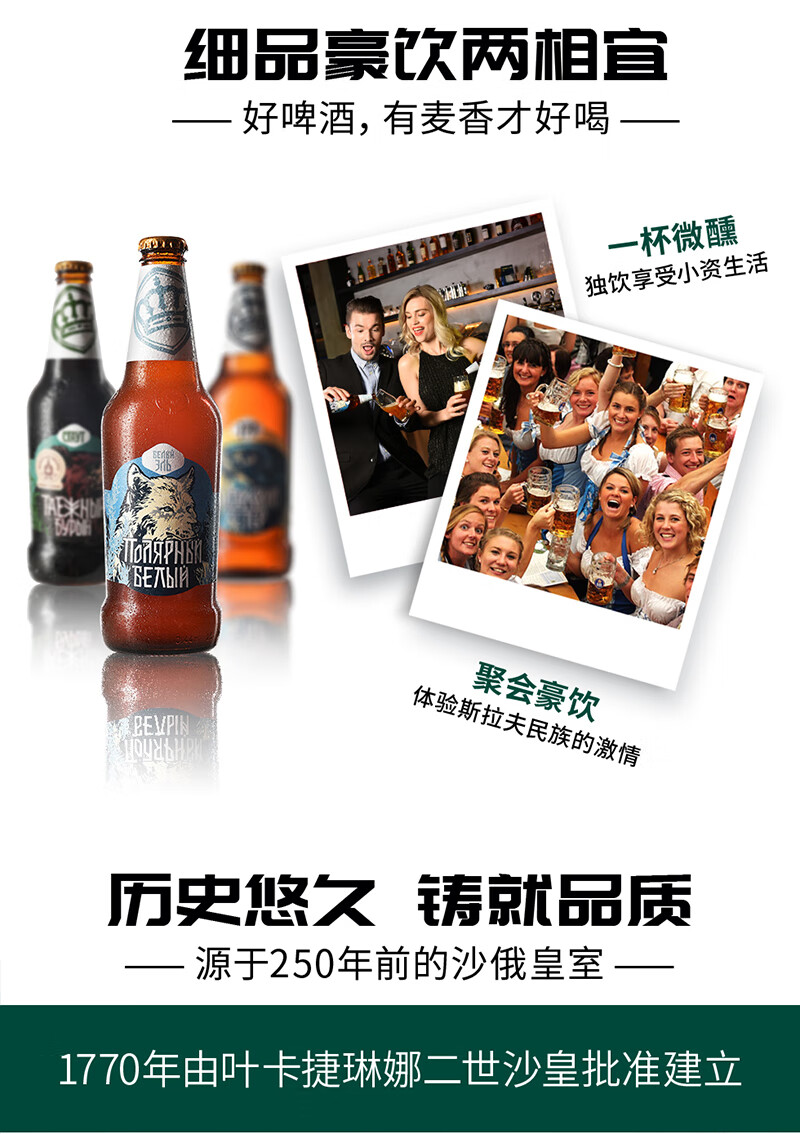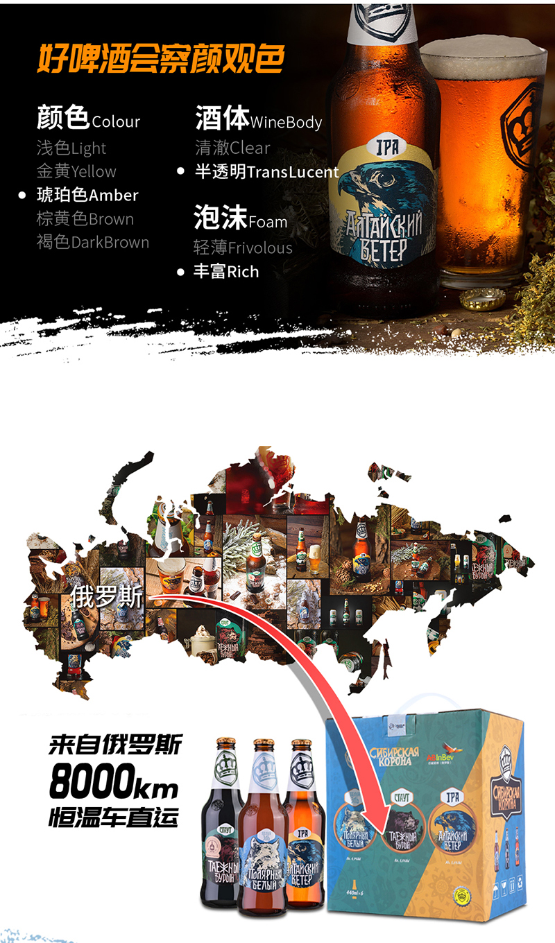 国产/进口:进口;产地:俄罗斯;适用场景:家庭聚会,礼节拜访,情侣约会,自斟自饮,派对必备,烧烤撸串,酒吧夜店,野餐出游;包装:礼盒装;容量:331-499mL;类别:精酿;原料:水、大麦、大麦芽、焦糖麦芽、干炒麦芽、小麦、乳糖、橘皮、芫荽、啤酒花;系列:精酿麦酒系列;保质期:一年;酒精度:4.9%vol、5.6%vol、5.5%vol;原产地:俄罗斯;原麦汁浓度:12.5°P、13.5°P、14°P;存储方法:阴凉干燥通风处避光存放;产品重量:4.5kg;容量:440ml;包装清单:百威英博俄罗斯进口 西伯利亚王冠 精酿麦酒整箱440ml*6瓶;