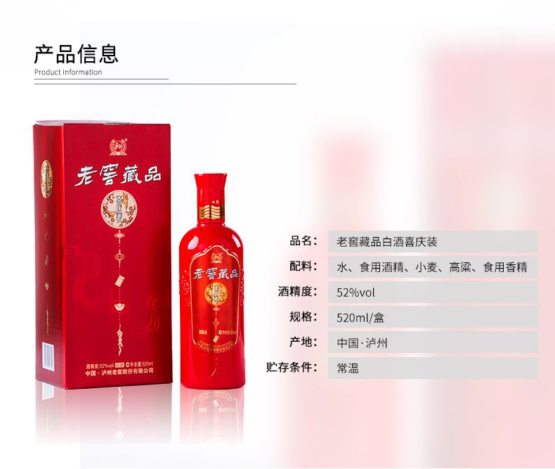 包装:整箱装;容量:500-749mL;香型:其它;产地:四川;度数:50度及以上;酒精度:52%vol;容量:520ml*6;产品重量:7960g;包装清单:喜庆装 52度 520ml*6瓶;