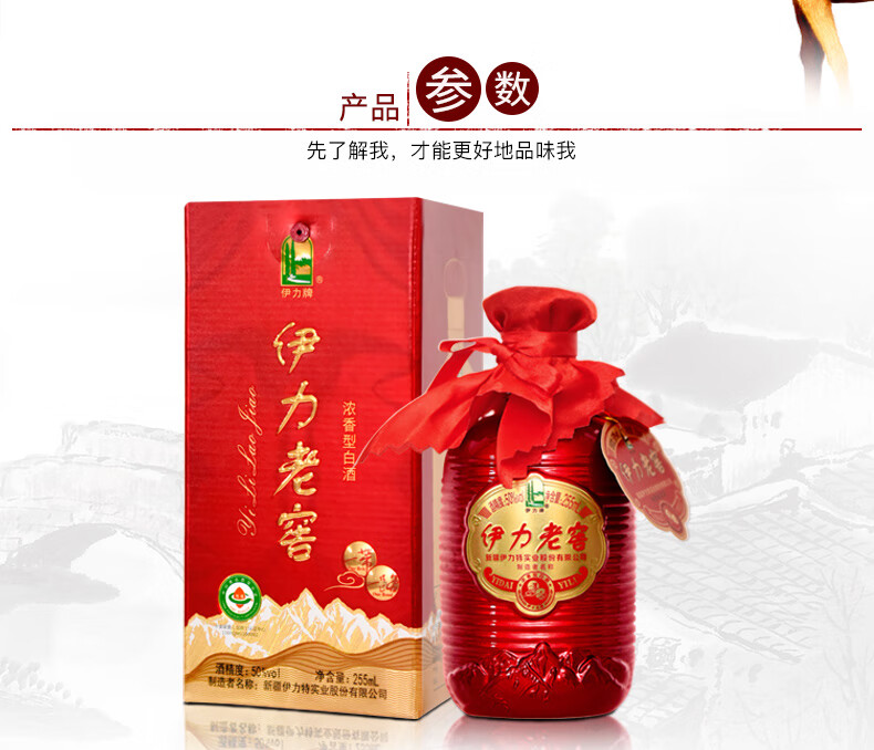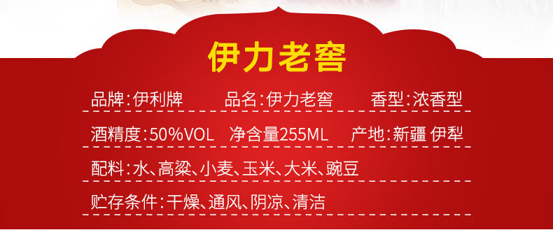 包装:整箱装;容量:375mL及以下;香型:浓香型;产地:新疆;度数:50度及以上;酒精度:50%vol;容量:255ml;产品重量:7400g;包装清单:伊力特 伊力老窖 50度浓香型255ml*10整箱装;
