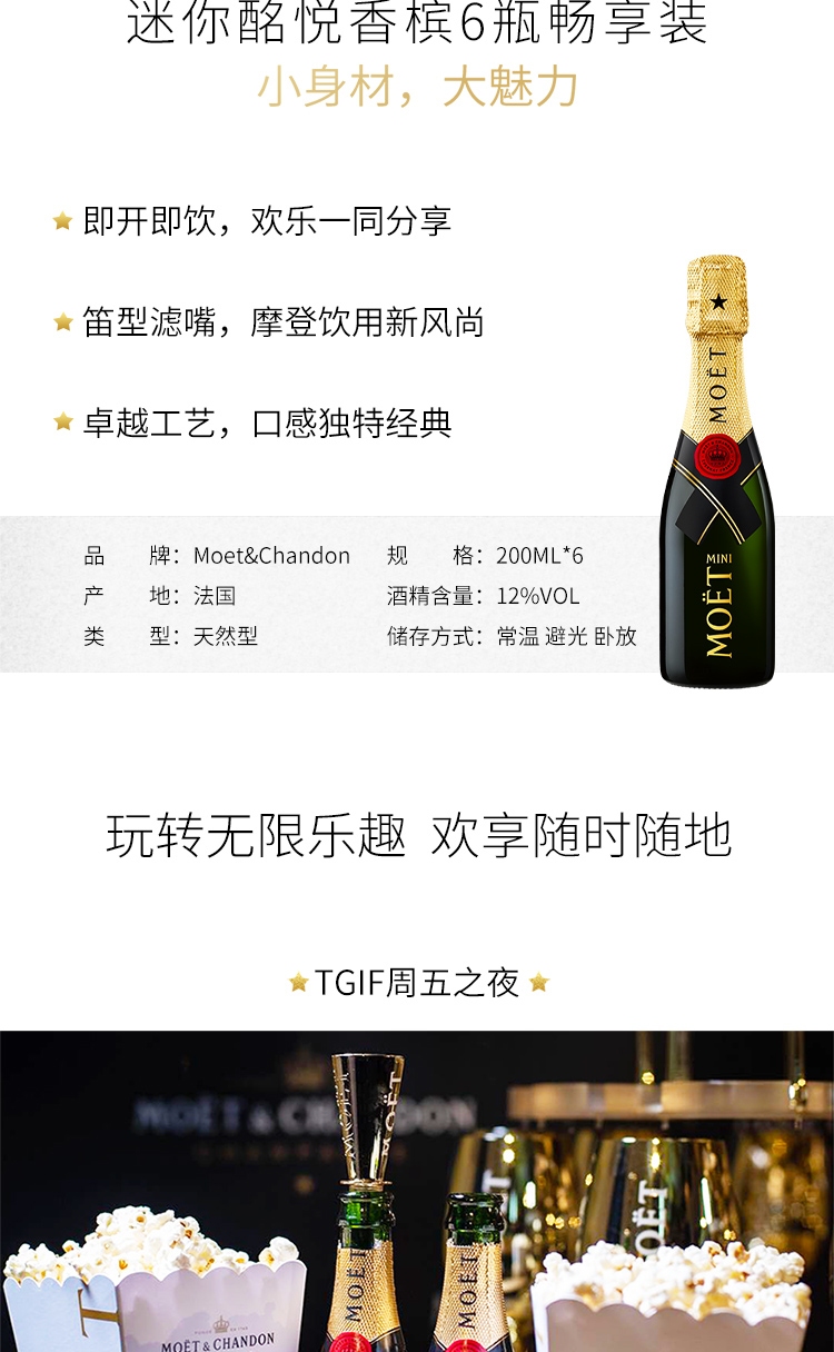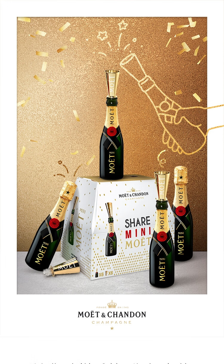 酩悦 Moet & Chandon 迷你酩悦 葡萄酒 香槟 200ml*6瓶 整箱装 法国进口