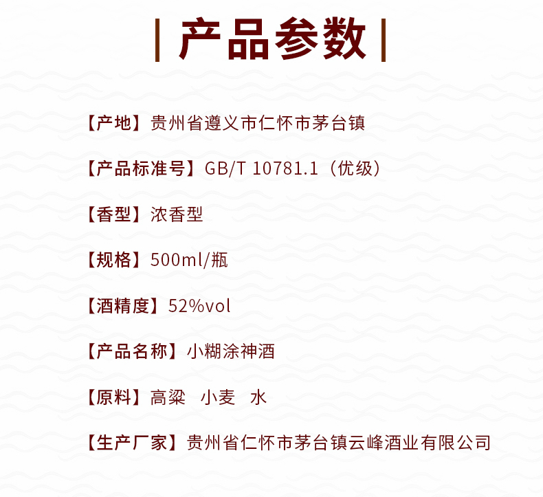 包装:整箱装;容量:376-499mL;香型:浓香型;产地:贵州;度数:50度及以上;酒精度:52%vol;容量:500;产品重量:12605g;包装清单:小糊涂仙 小糊涂神(普神)浓香型白酒 52度 500ml*12瓶 整箱装;