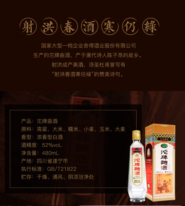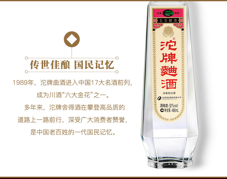 包装:瓶装;容量:376-499mL;香型:浓香型;产地:四川;度数:50度及以上;酒精度:52%vol;容量:480ml;产品重量:1000g;包装清单:沱牌曲酒30周年纪念版 52度 480ml 单瓶装;