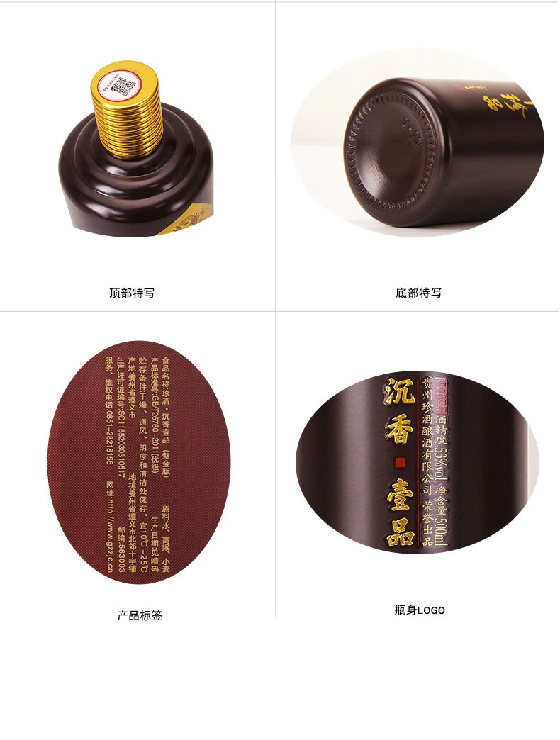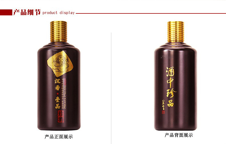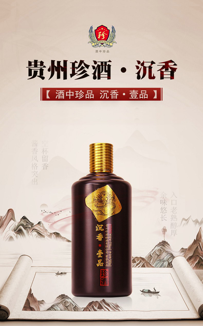 包装:瓶装;容量:500-749mL;香型:酱香型;产地:贵州;度数:50度及以上;酒精度:53%vol;容量:500ml;产品重量:1100g;包装清单:珍酒 沉香一品(紫金版)53度 酱香型白酒 500ml *1;