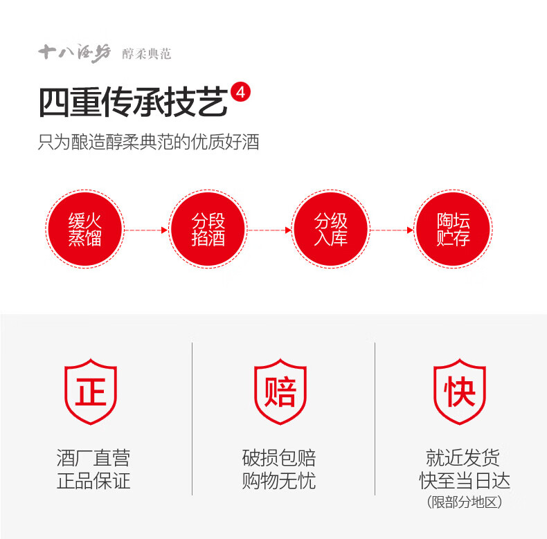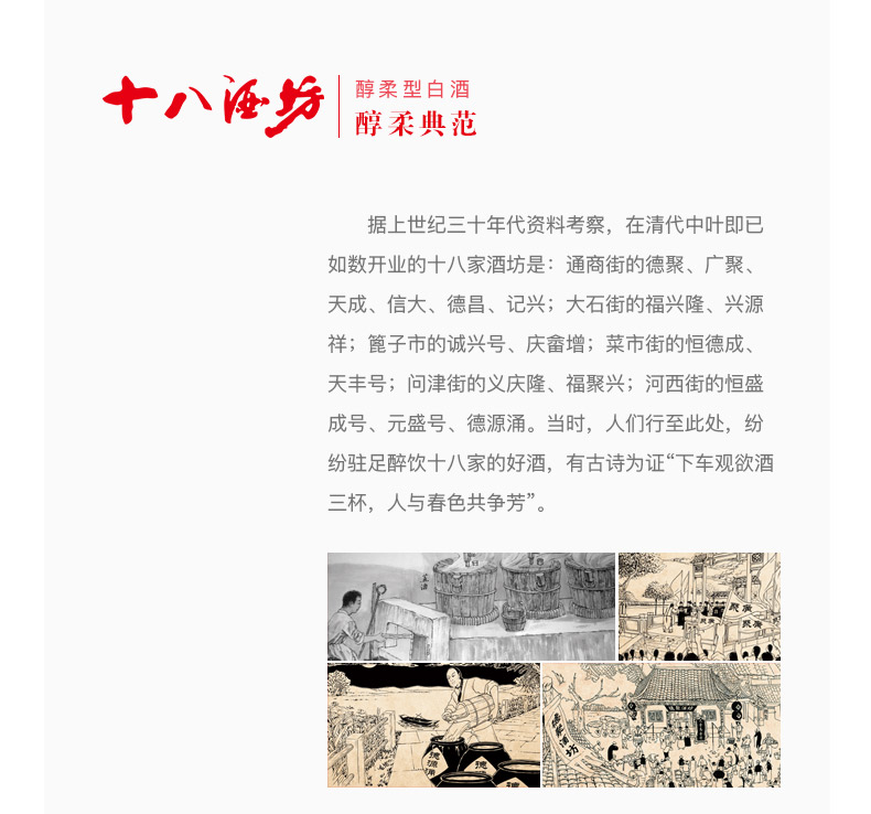 包装:整箱装;容量:376-499mL;香型:老白干香型;度数:35-39度;香型:老白干香型;产地:河北;度数:39;包装:整箱装;产品重量(kg):6.85;容量:480ml;包装清单:十八酒坊醇柔典范12 39度 480ml*4瓶 手提袋*2;