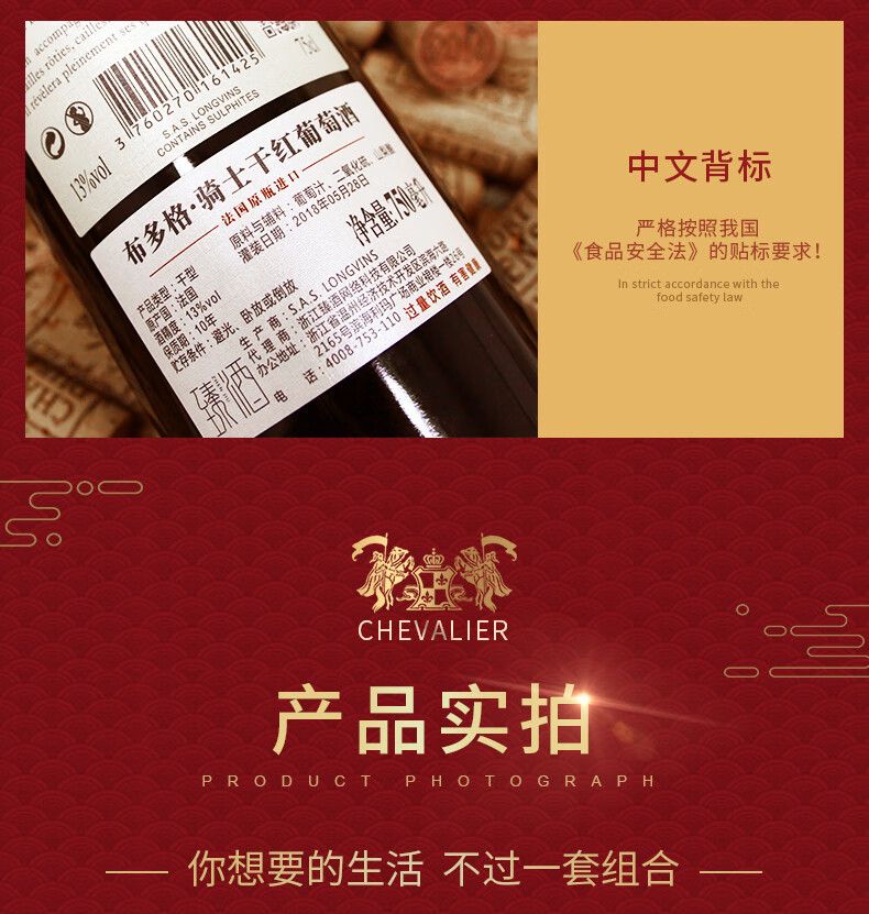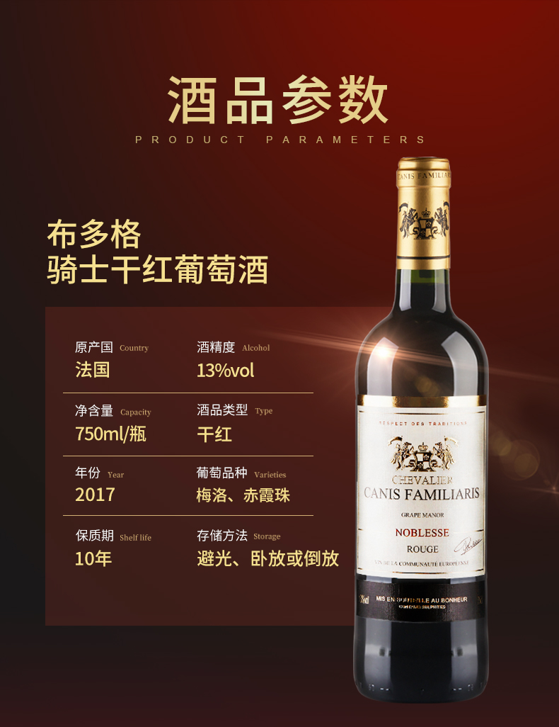 法国进口红酒 布多格骑士干红葡萄酒双支礼盒装 750ml*2瓶