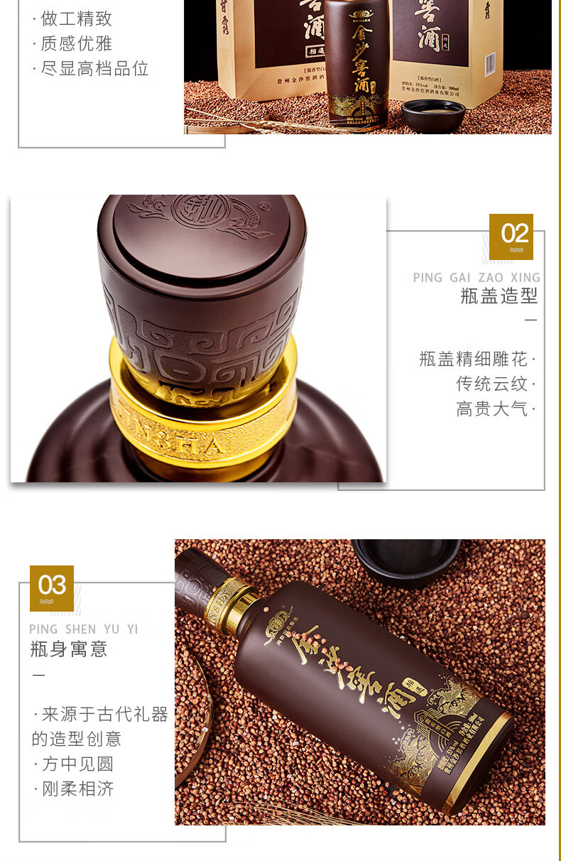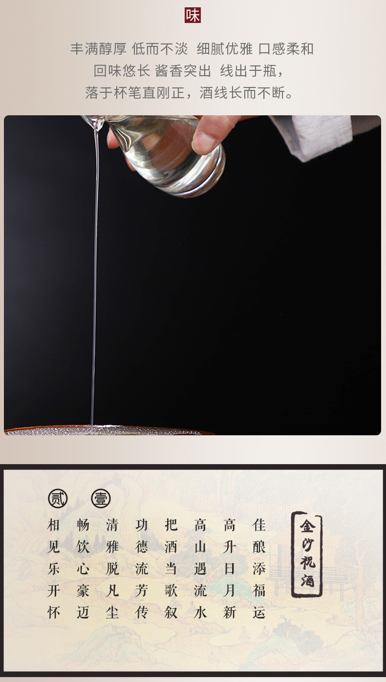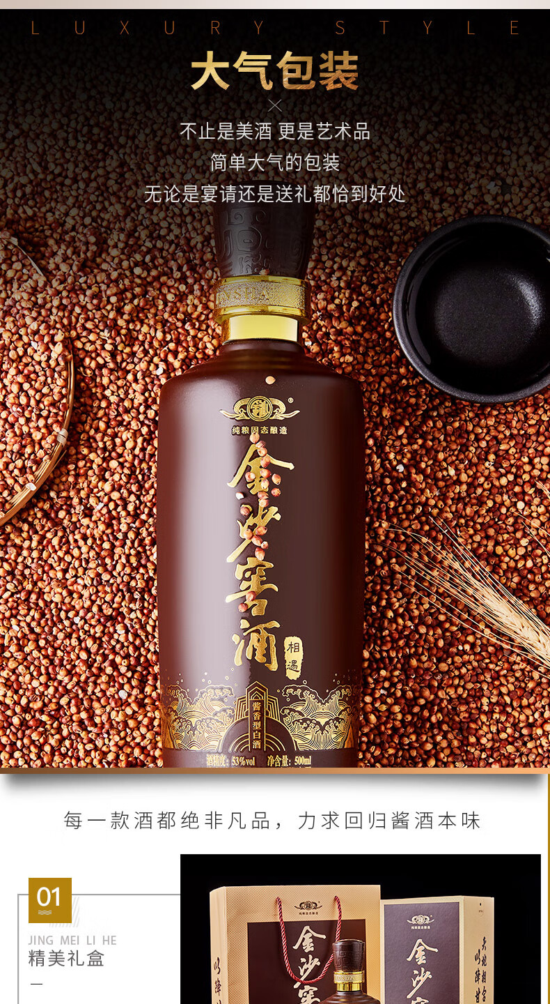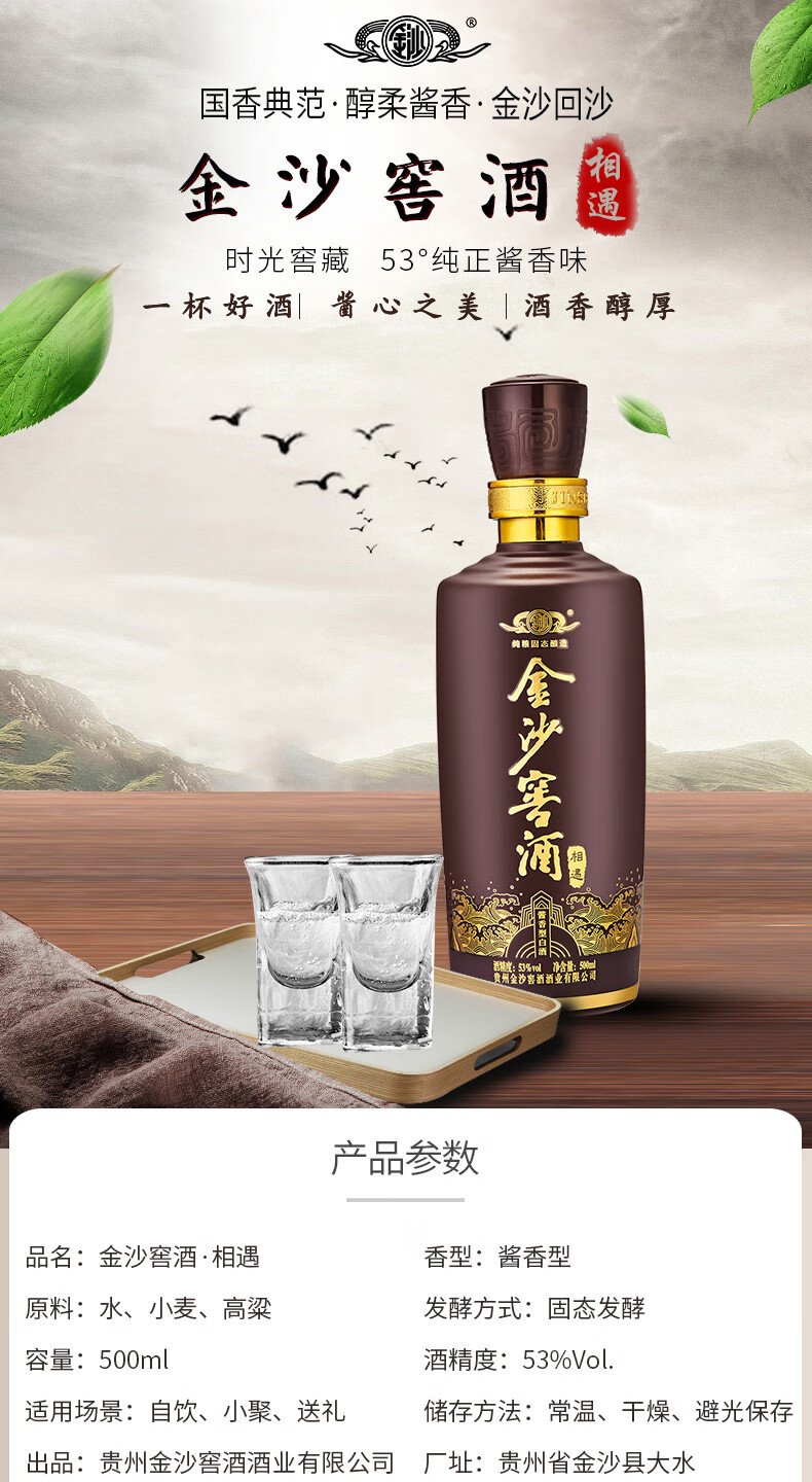 包装:整箱装;容量:500-749mL;香型:酱香型;产地:贵州;度数:50度及以上;酒精度:53%vol;容量:500-749ml;产品重量:0g;包装清单:金沙窖酒相遇500ml*6;