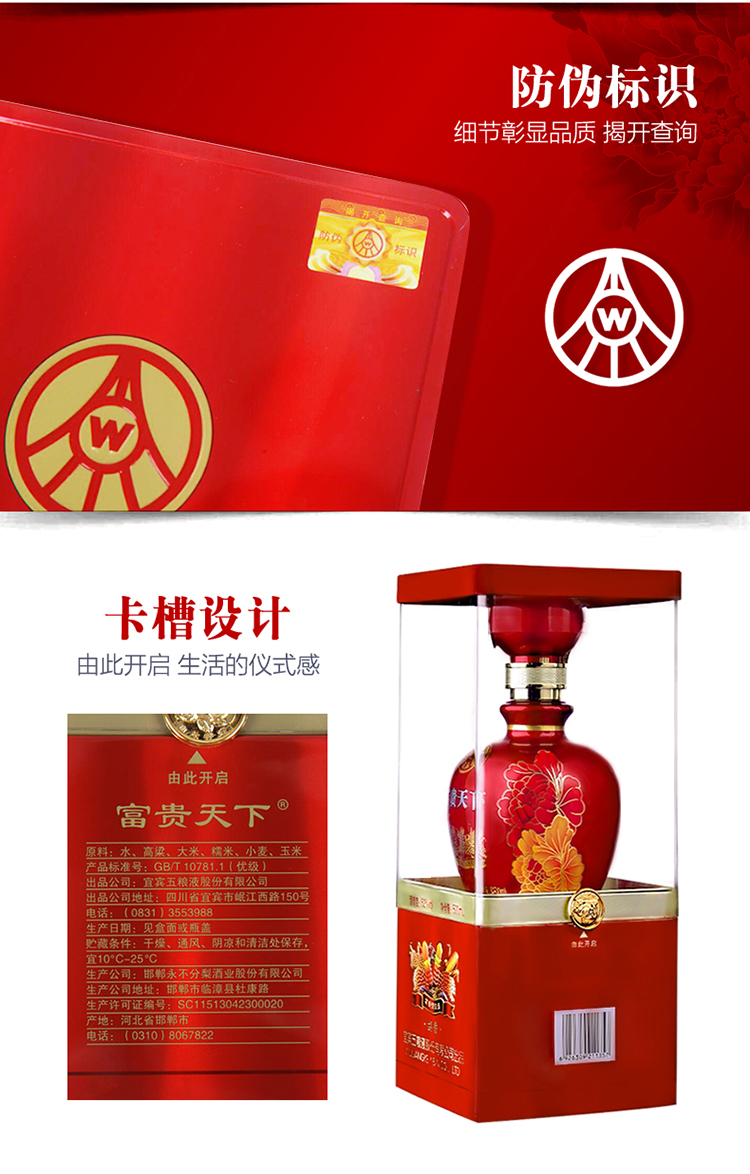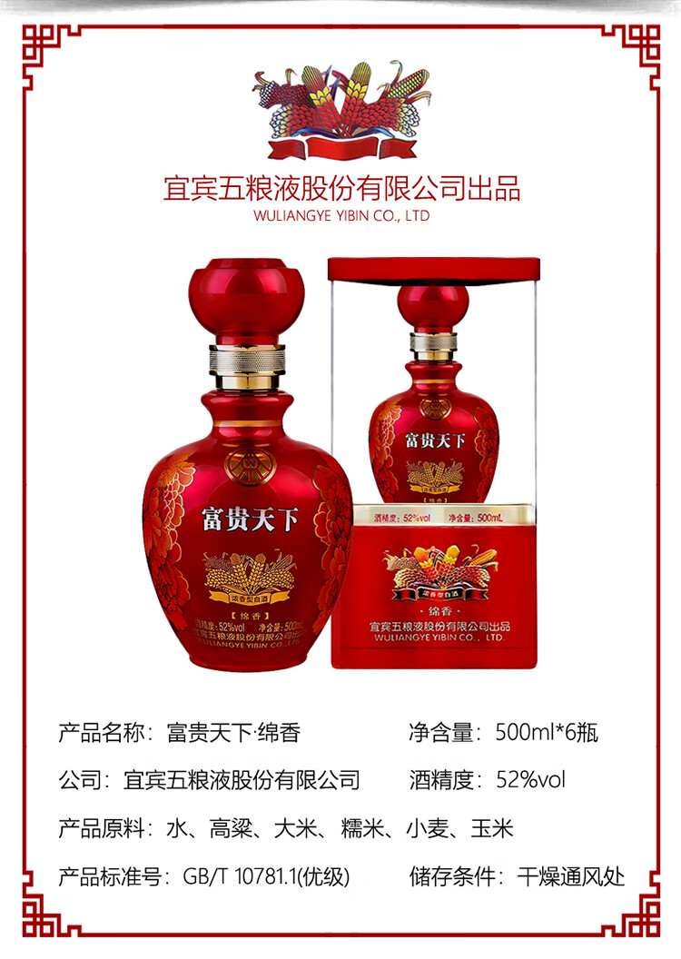 包装:整箱装;容量:376-499mL;香型:浓香型;产地:河北;度数:50度及以上;酒精度:52%vol;容量:500ml;产品重量:10.5g;包装清单:500ml*6整箱装;