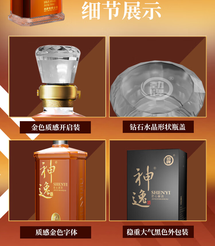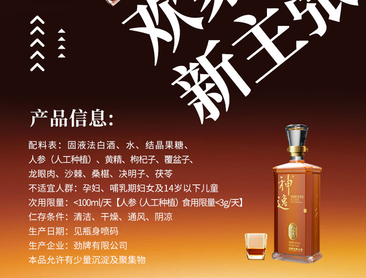 适用场景:商务宴请,自斟自饮,家庭聚会,礼节拜访;包装:瓶装;容量:500-999mL;度数:35-39度;产地:湖北;保质期:无;酒精度:38;存储方法:干燥恒温通风环境;容量:700mL;产品重量:2kg;包装清单:劲牌 劲酒 神逸 38度 700ml * 1;