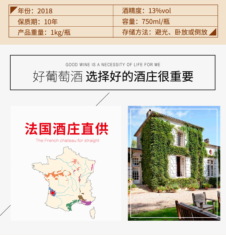 口感:柔和;特性:普通餐酒;国产/进口:进口;适用场景:礼节拜访,商务宴请,婚礼婚宴,情侣约会,家庭聚会,收藏,自斟自饮,闺蜜私语,派对活动;包装:整箱装;类别:红葡萄酒;葡萄品种:混合(Blending),梅洛(Merlot);产地:法国;容量:750mL;甜度:干型;保质期:3650天;酒精度:13;原产地:法国;存储方法:避光存放;容量:750ml;产品重量:8kg;包装清单:红酒*6、海马刀*1、礼盒*1;