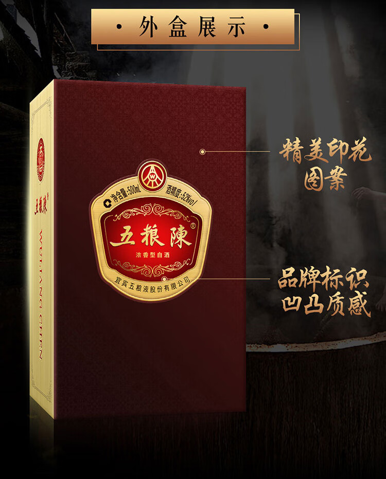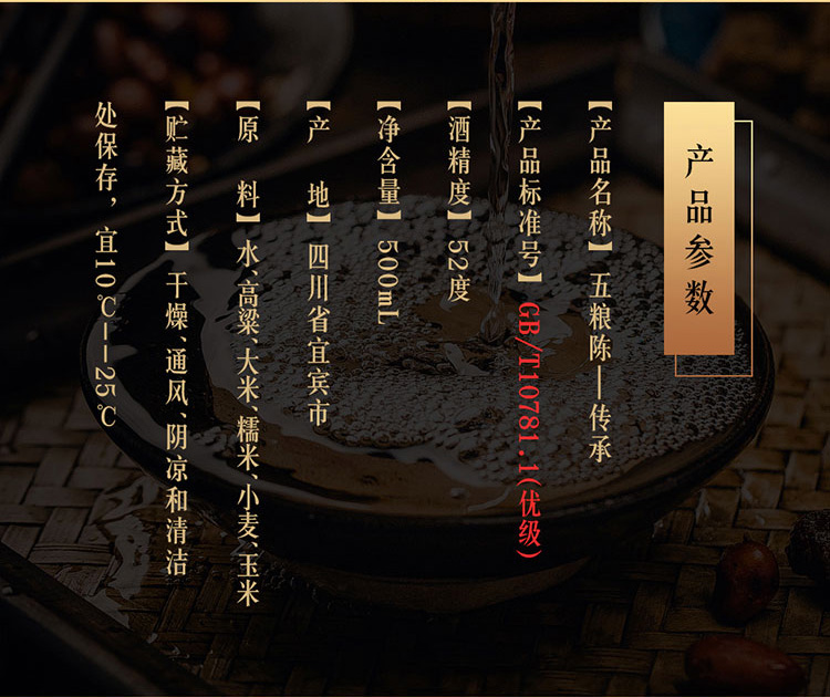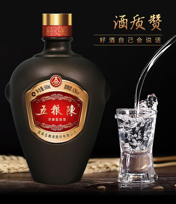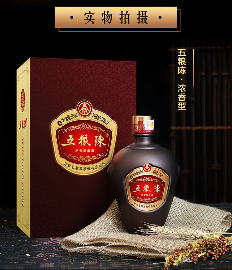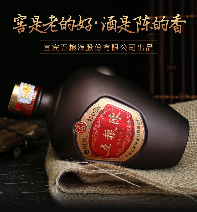 包装:瓶装;容量:500-749mL;香型:浓香型;产地:四川;度数:50度及以上;酒精度:52%vol;容量:500;产品重量:1600g;包装清单:五粮陈 传承52度 500ml 单瓶装;