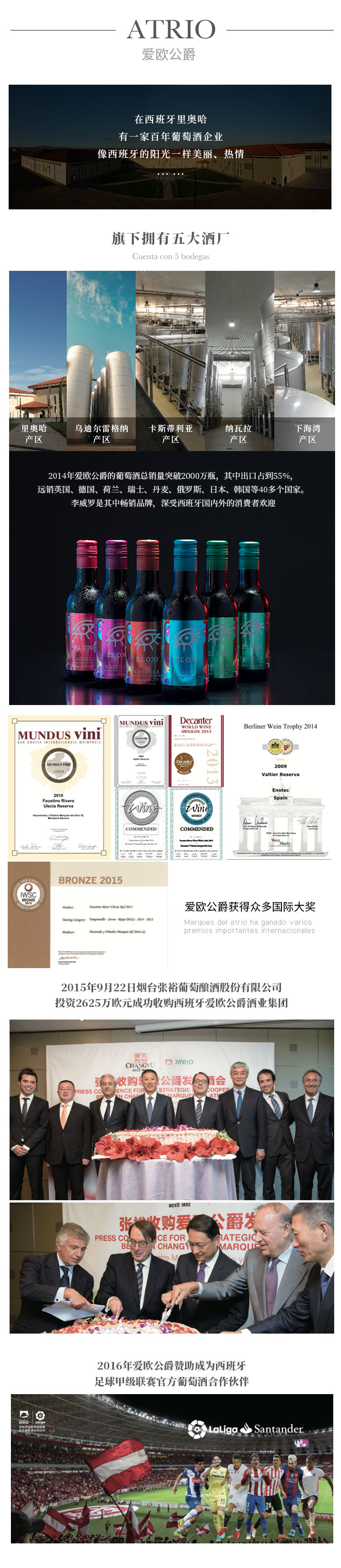 张裕先锋爱欧公爵世界之眼丹魄干红葡萄酒小瓶小支装小酒 187ml*6瓶 整箱礼盒装 西班牙进口红酒