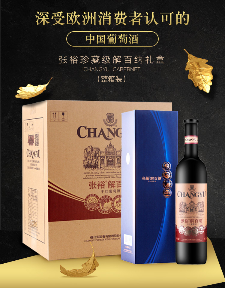 张裕 珍藏级解百纳 干红葡萄酒(磨砂瓶/礼盒装)750ml*6瓶 整箱装 国产红酒
