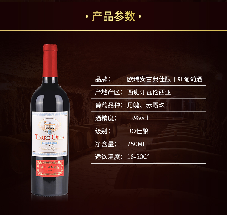 玛利亚海之情 欧瑞安古典佳酿干红葡萄酒750ml*6瓶整箱装 西班牙进口红酒