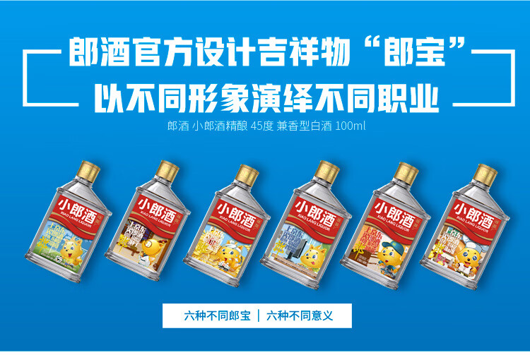 包装:整箱装;容量:375mL及以下;香型:兼香型;产地:四川;度数:40-49度;酒精度:45%vol;容量:100ml*24;产品重量:8265g;包装清单:100ml*24瓶;
