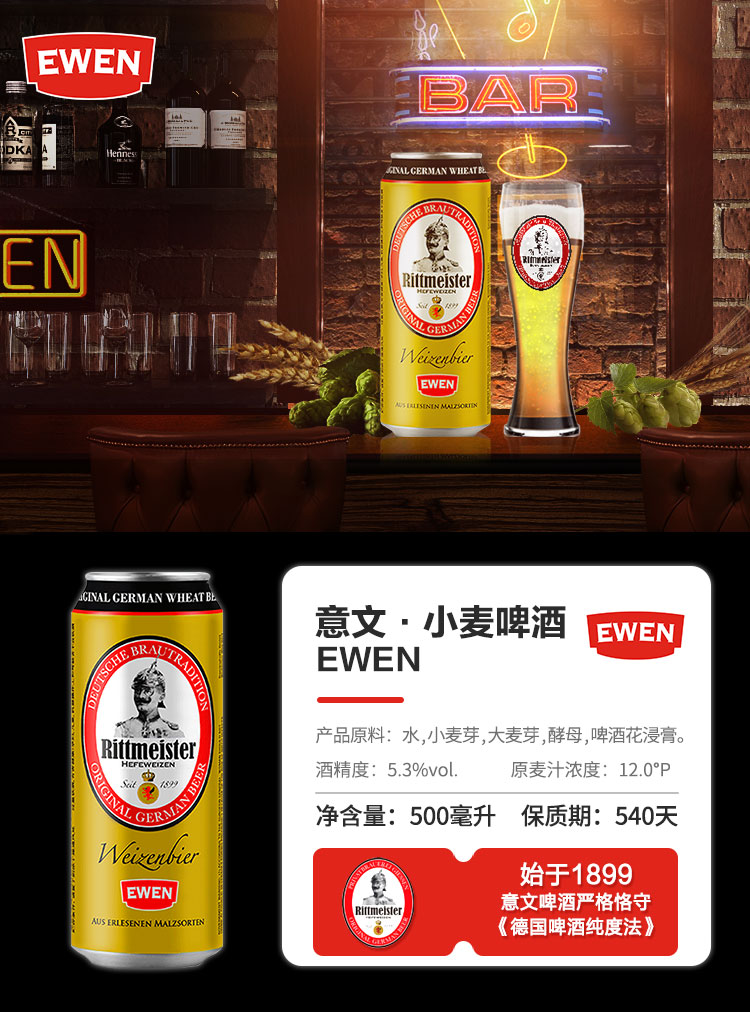 国产/进口:进口;产地:德国;适用场景:家庭聚会,礼节拜访,情侣约会,自斟自饮,派对必备,烧烤撸串,酒吧夜店,野餐出游;包装:整箱装;容量:500mL;类别:白啤酒;原料:水,小麦芽,大麦芽,酵母,啤酒花浸膏;保质期:540天;酒精度:5.3;原产地:德国;原麦汁浓度:12;存储方法:常温;产品重量:12.5kg;容量:500ml*24;包装清单:500ml*24听;