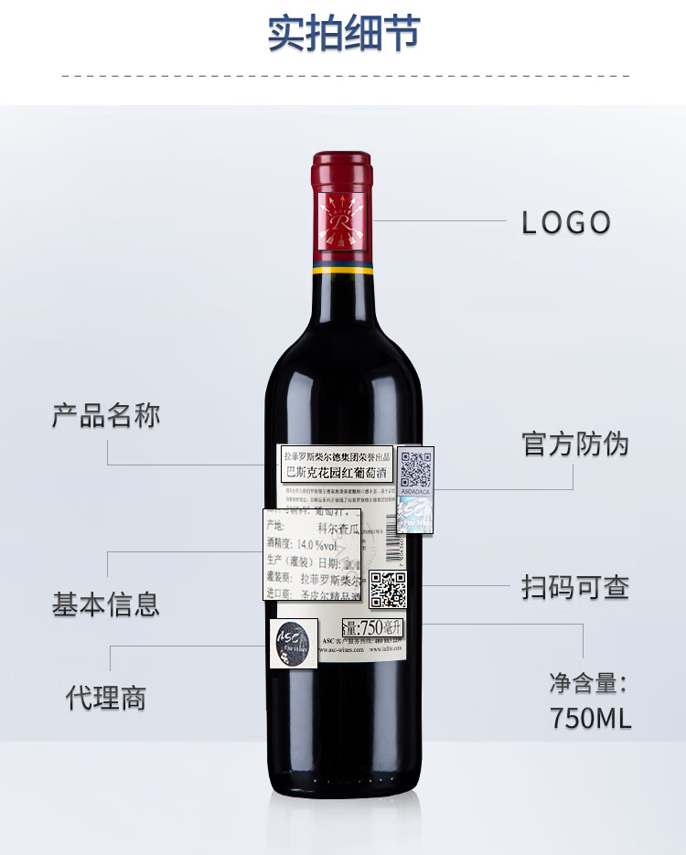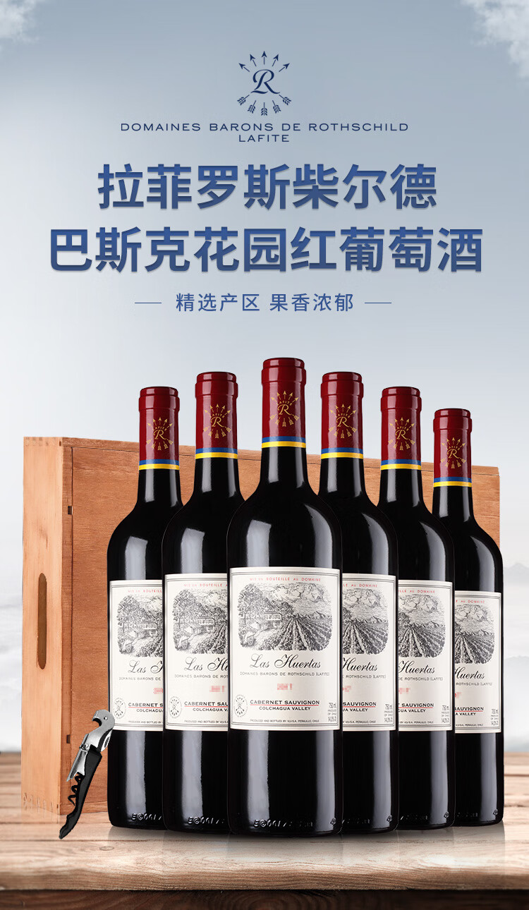 拉菲(LAFITE)巴斯克花园 赤霞珠干红葡萄酒 750ml*6瓶 整箱木箱礼盒装 智利进口红酒