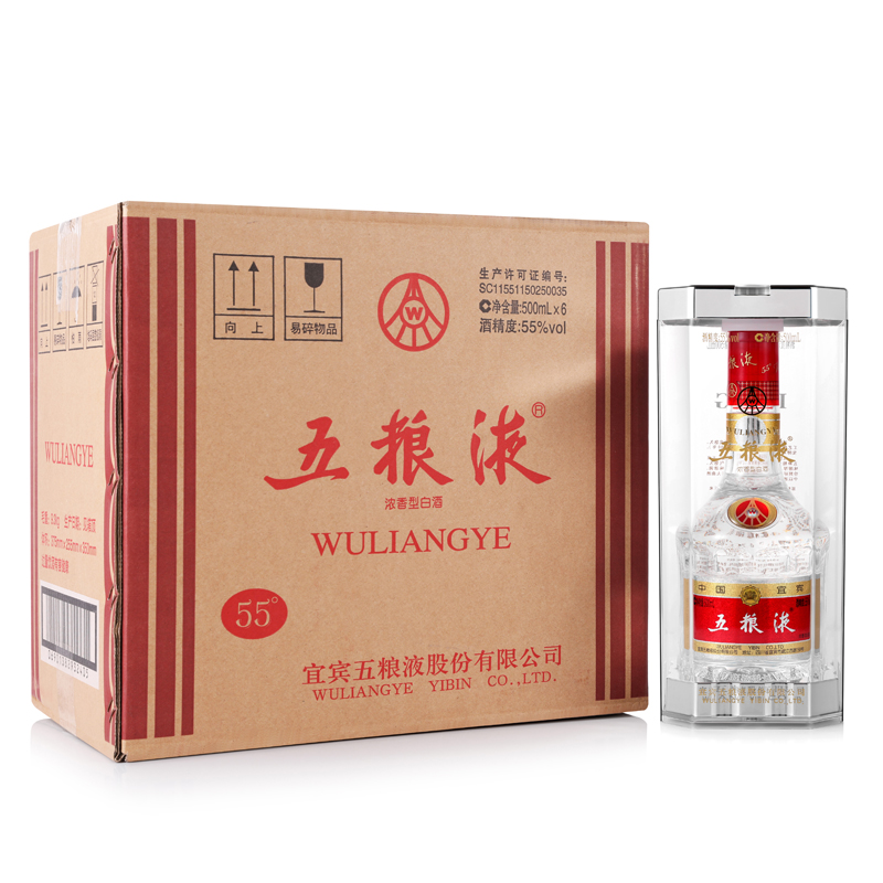 包装:整箱装;容量:750mL及以上;香型:浓香型;度数:50度及以上;香型:浓香型;产地:四川;酒精度:55%vol;包装:整箱装;产品重量:9300g;容量:500ml*6;包装清单:五粮液55度浓香型白酒500ml*6瓶 整箱装*1;