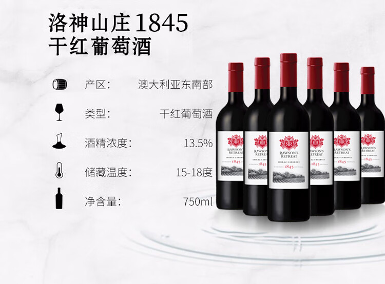 颜色:宝石红;口感:饱满;特性:普通餐酒;国产/进口:进口;适用场景:家庭聚会,商务宴请,婚礼婚宴,自斟自饮;包装:整箱装;酸度:低酸;类别:红葡萄酒;葡萄品种:赤霞珠(Cabernet Sauvignon),西拉/设拉子(Syrah/Shiraz);类型:静止酒;香型:果香,香料,奶油,巧克力;产地:澳大利亚;容量:750mL;甜度:干型;保质期:无;酒精度:13.5%vol;原产地:澳大利亚;存储方法:阴凉,避光;产品重量:8.2kg;容量:750ml;包装清单:红酒一箱750ml*6;