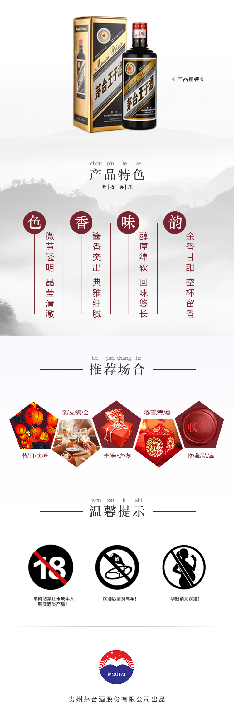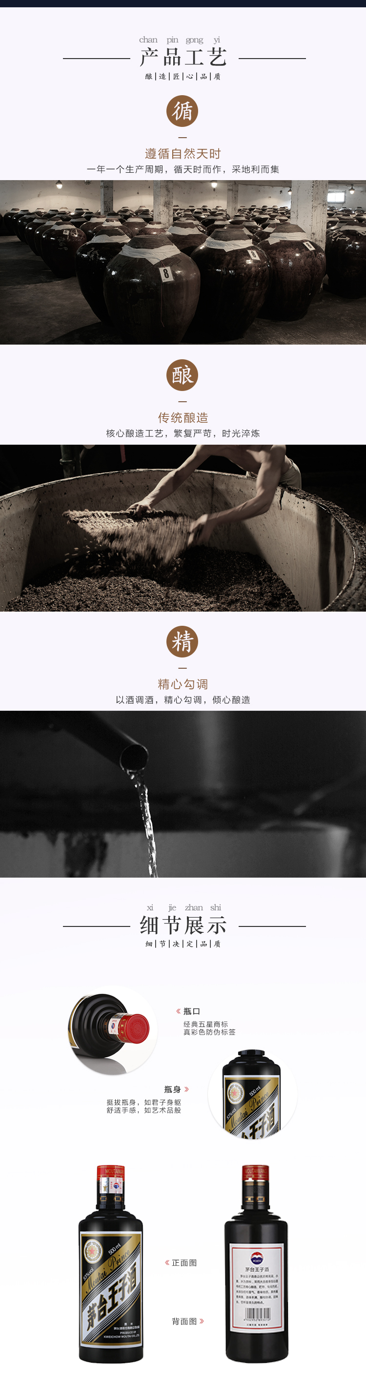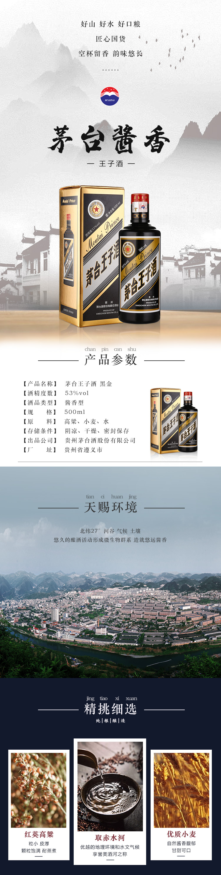 包装:整箱装;容量:500-749mL;香型:酱香型;产地:贵州;度数:50度及以上;酒精度:53%vol;容量:500ml;产品重量:7300g;包装清单:茅台 MOUTAI 53度酱香型白酒 王子黑金 500ml*6瓶 整箱装;