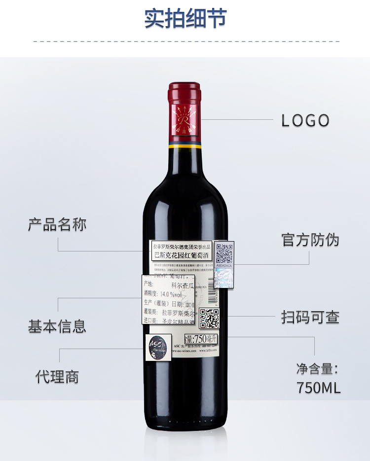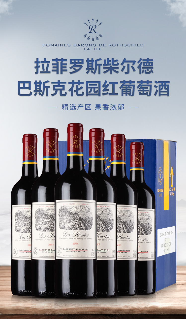 拉菲(LAFITE)巴斯克花园 赤霞珠干红葡萄酒 750ml*6瓶 整箱装 智利进口红酒