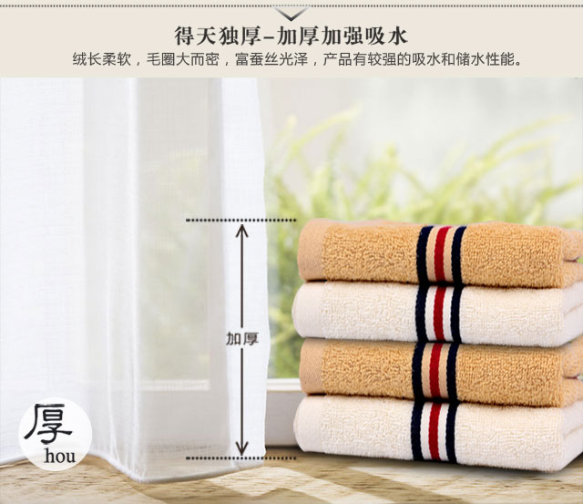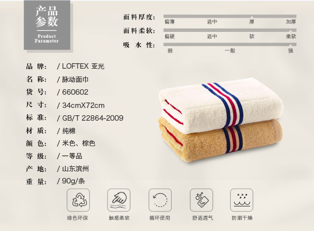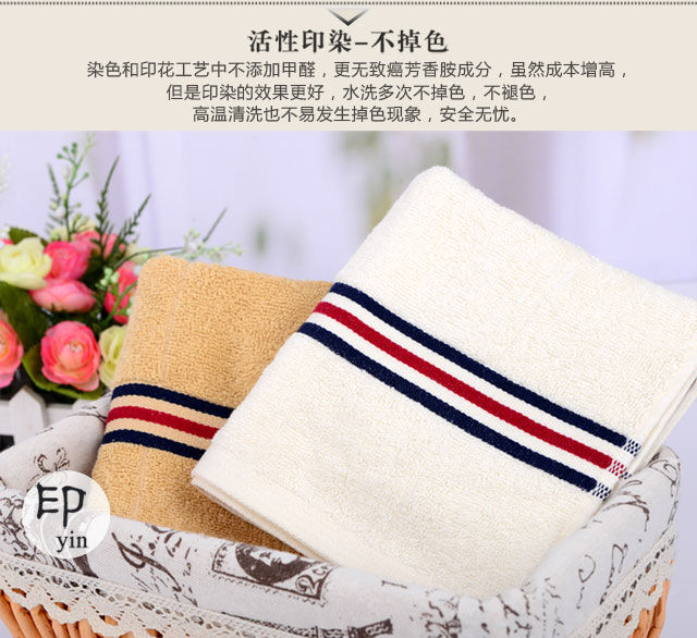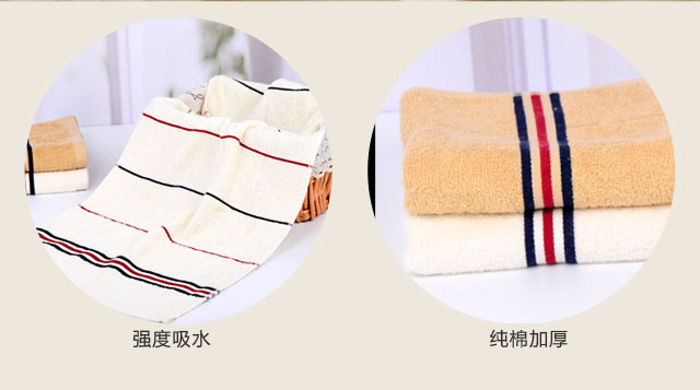 风格:素色简约,条纹印象;分类:毛巾/面巾;材质:纯棉;工艺:毛圈;分类:毛巾/面巾;材质:纯棉;工艺:毛圈;风格:素色简约;产品规格(长x宽cm):34*72cm;产品重量[*克(g)/件]:90g/条;包装清单:面巾×2;