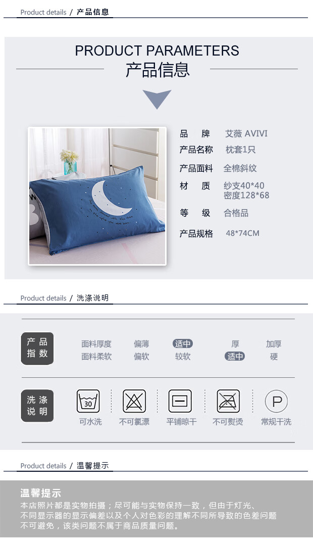 艾薇(AVIVI)全棉枕套40支纯棉斜纹印花枕头套1个装48 74迷离夜色