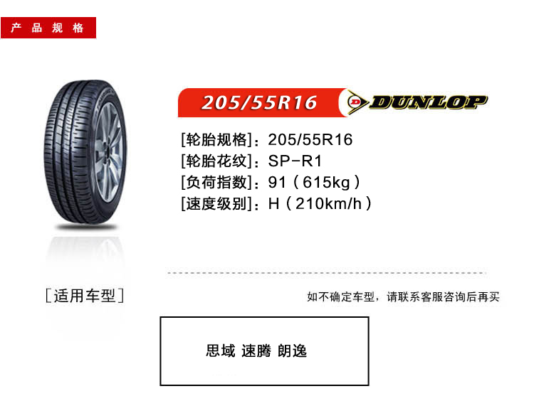 车型类别:轿车轮胎;胎面宽度:205;扁平比:55;尺寸:16英寸;轮胎特性:其他;产品品牌:邓禄普;适用车型:轿车;匹配参数:205/55R16 91H;包装清单:轮胎*1条;