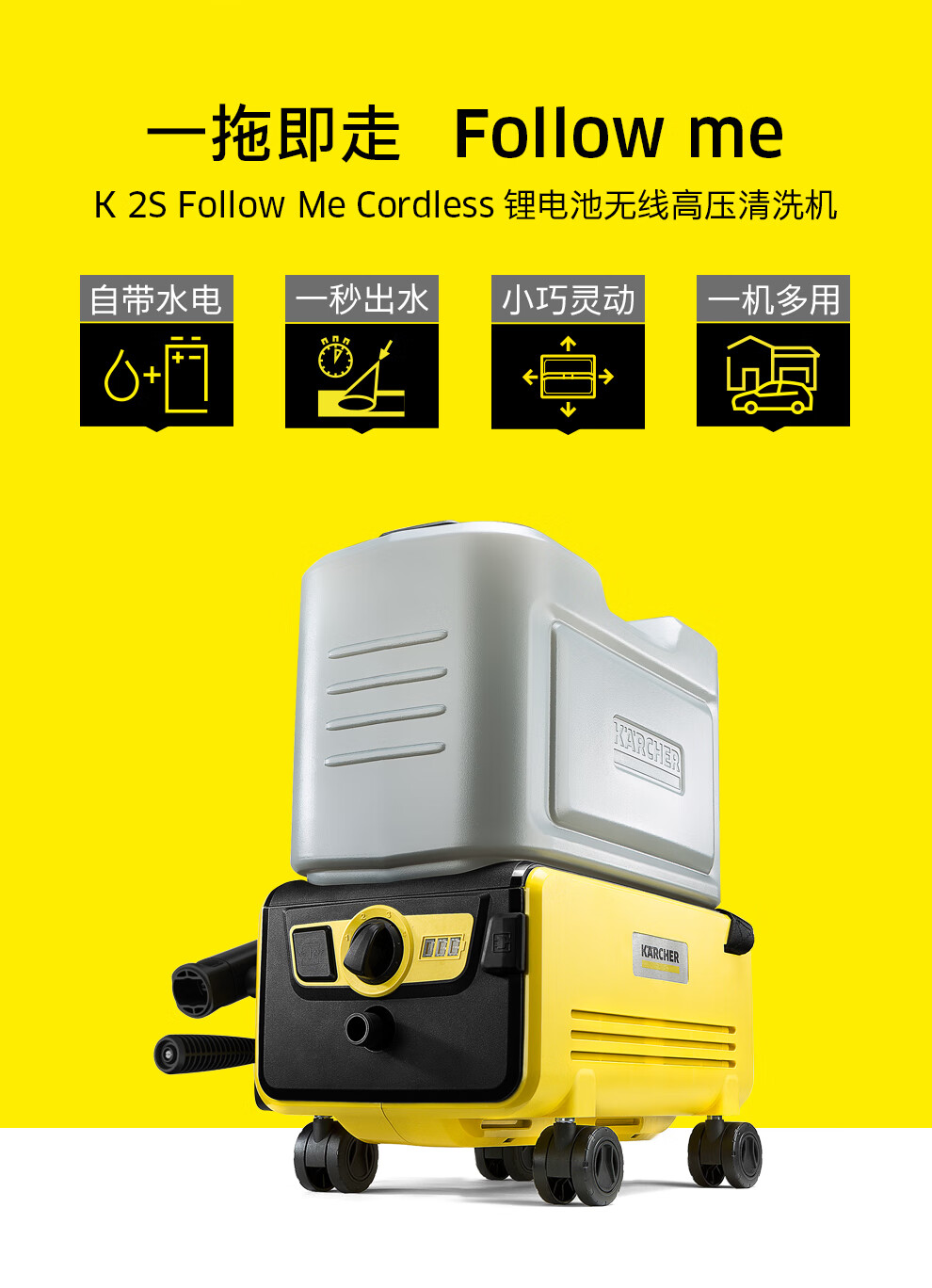karcher卡赫家用无线洗车机 洗车水枪高压清洗机 洗车神器洗车泵德国凯驰集团K2 Follow Me