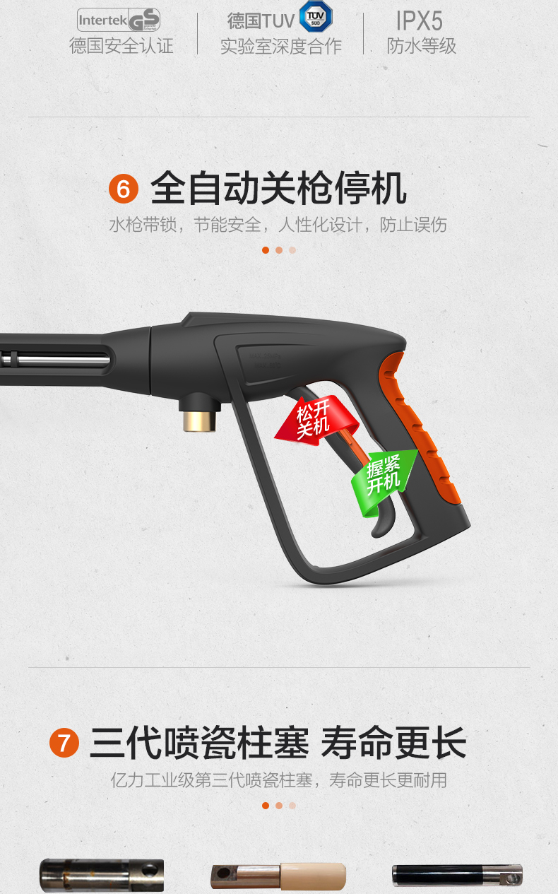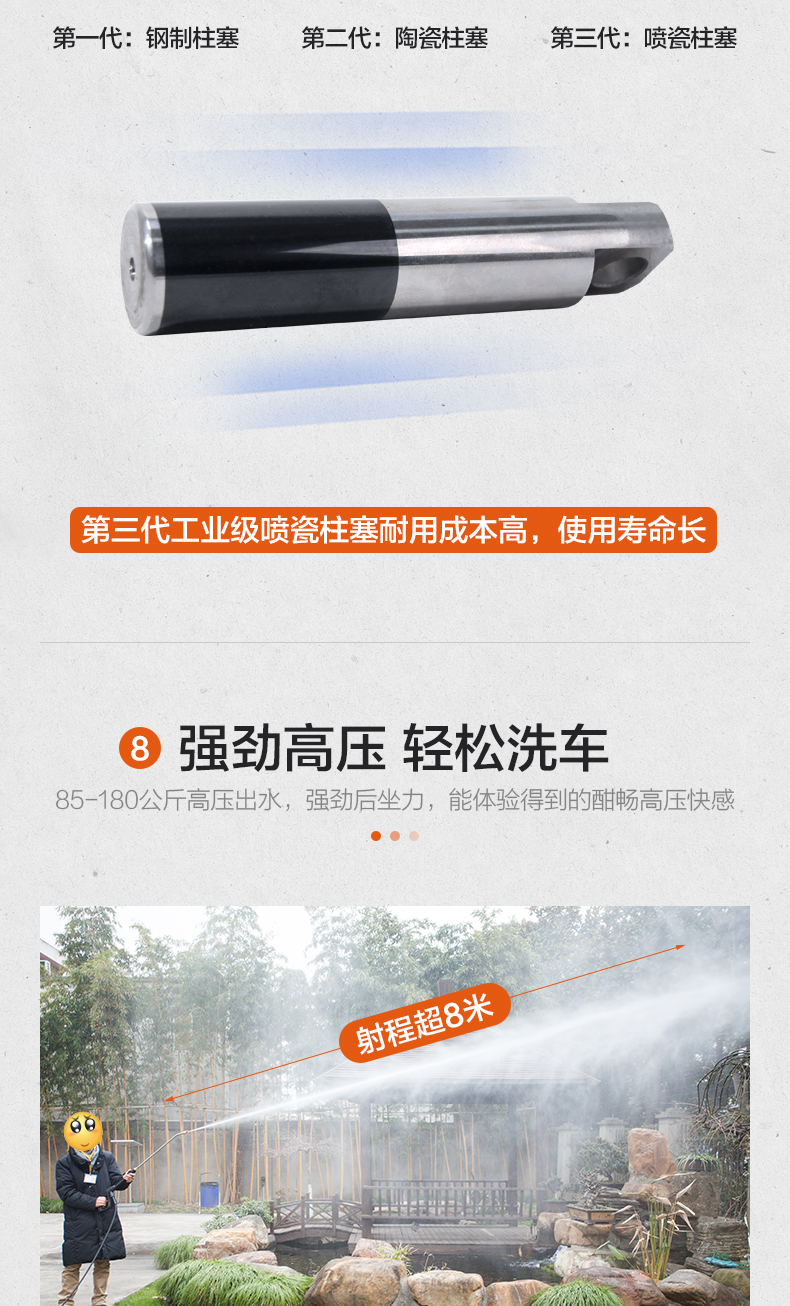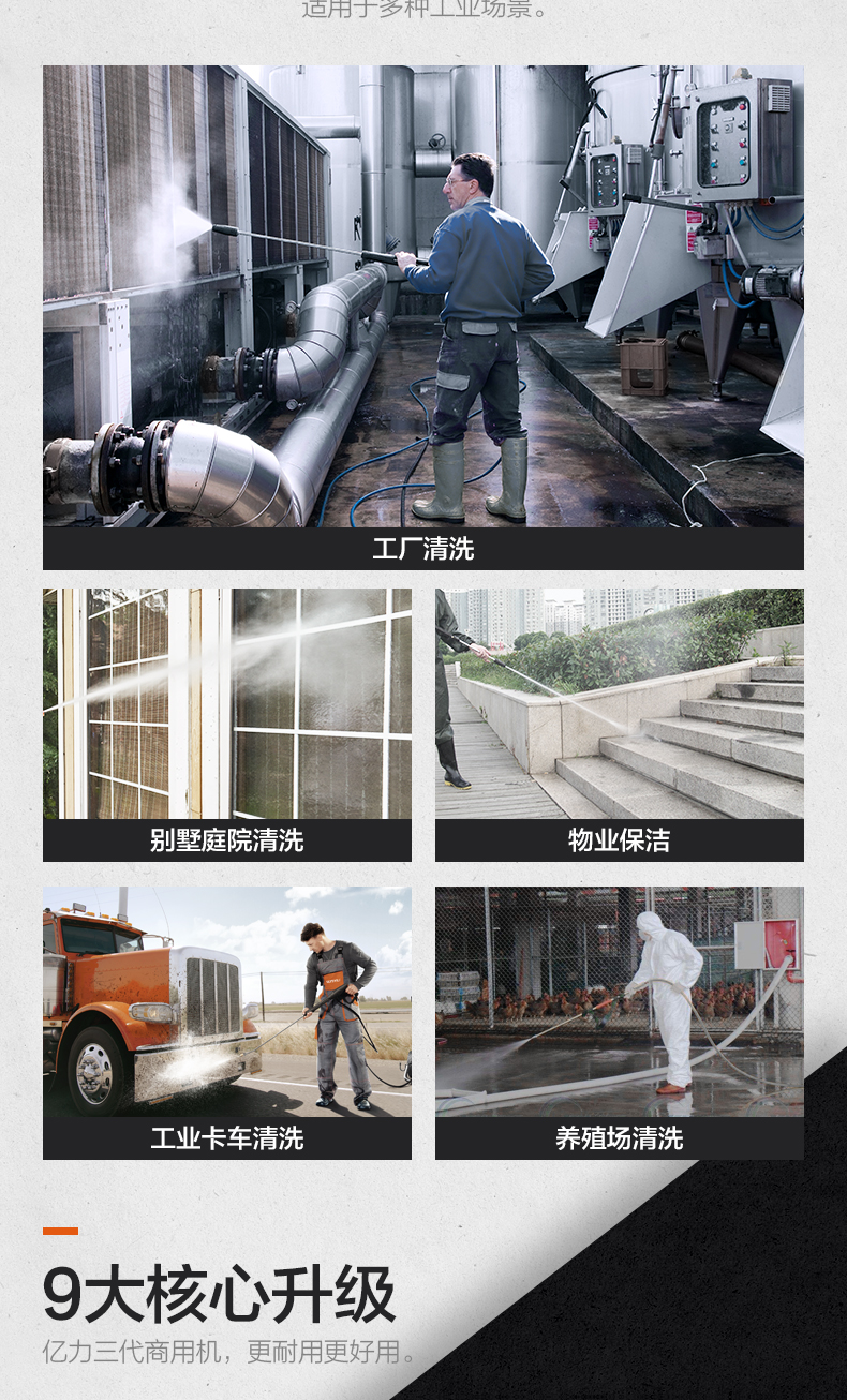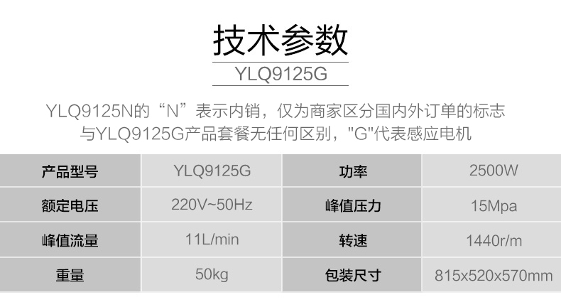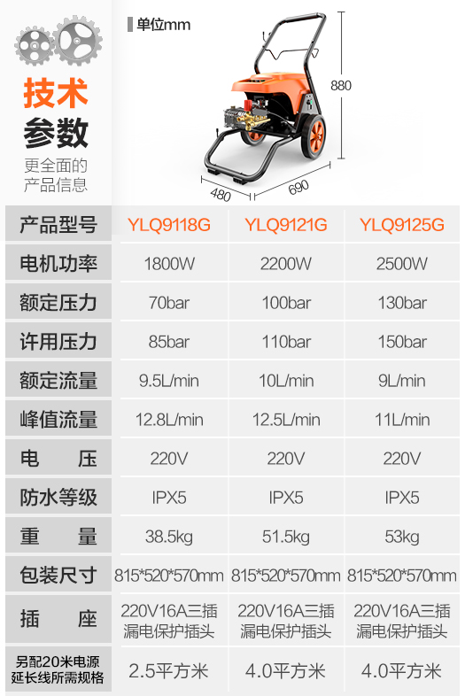 水源类型:自吸;电机冷却:风冷;适用环境:汽车,摩托车,电动车,自行车,庭院,园艺,宠物,酒店,工厂,物业,牧场,生鲜,市政;用途类型:工业高压;电源类型:220V;外观类型:推车式;额定压力:111bar以上;水管长度:10~20m;电机类型:感应电机;产品品牌:亿力;产品型号:YLQ9125G;包装清单:主机*1、不锈钢铜头折弯长枪*1、过滤器*1、10米钢编出水管*1、3米进水管*1、多角度快插喷嘴*4、易损包*1;