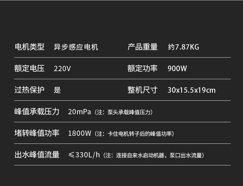 水源类型:自吸,水龙头;电机冷却:风冷;适用环境:汽车,摩托车,电动车,自行车,庭院,园艺,宠物,酒店,工厂,物业,牧场,生鲜,市政;用途类型:家用高压;电源类型:220V;电机类型:感应电机;产品品牌:指南车;产品型号:小黄龙;包装清单:主机、专用高压短枪、加长杆、2米进水管、15米高压管、塑料快接、过滤网、万能接头、泡沫壶、说明书、通水针;