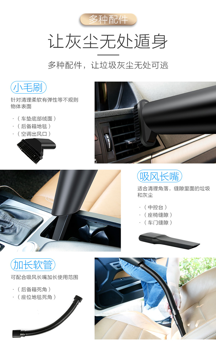 领臣 车载吸尘器 无线汽车用吸尘器 大吸力车家干湿两用小型沙发狗毛宠物用品母婴清洁手持多功能 120W大功率